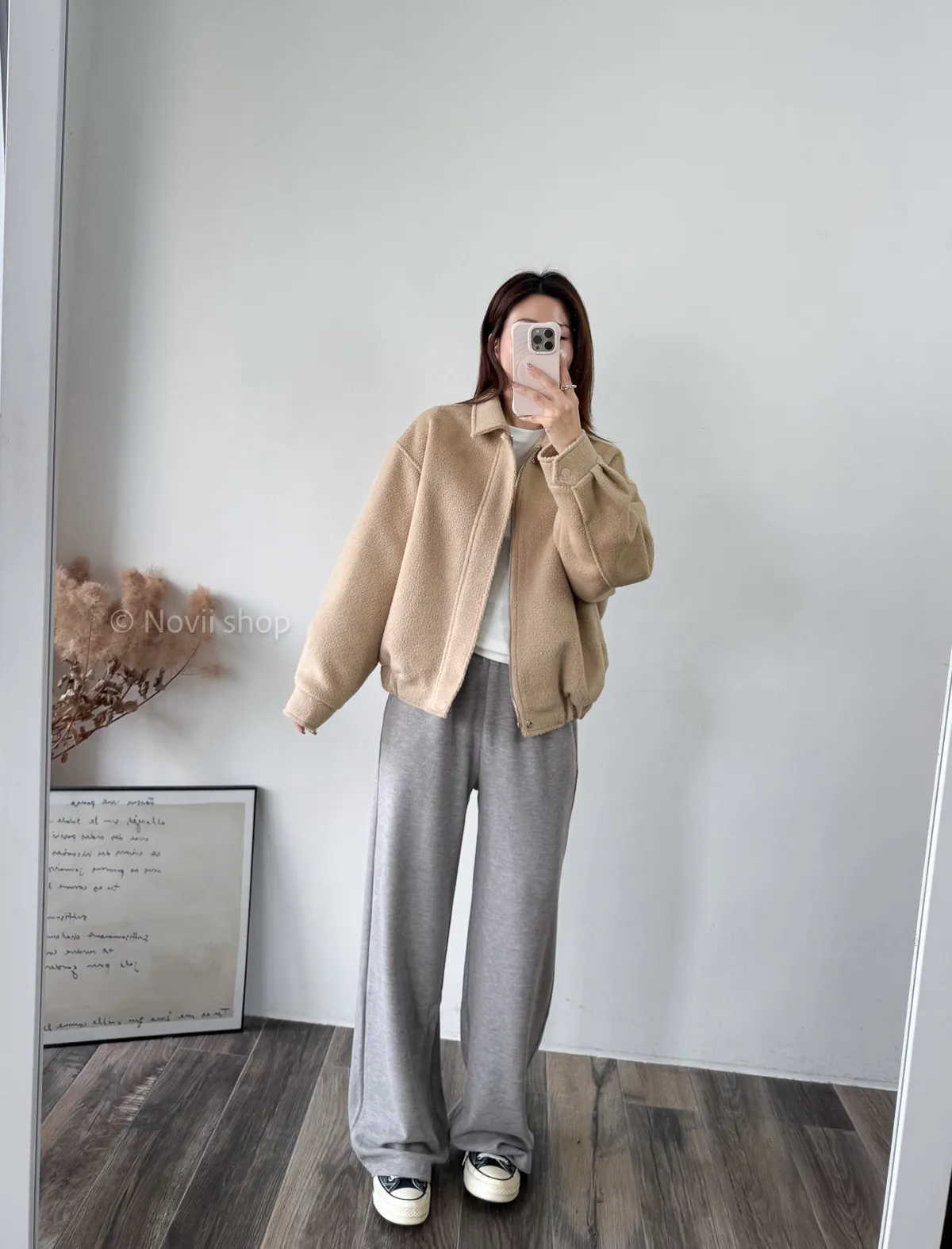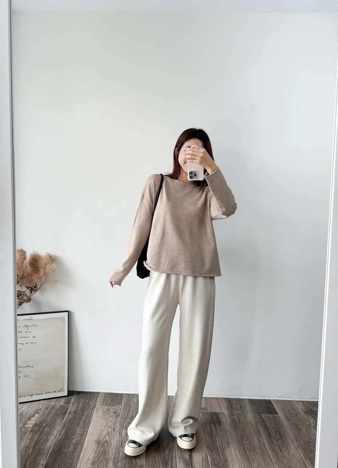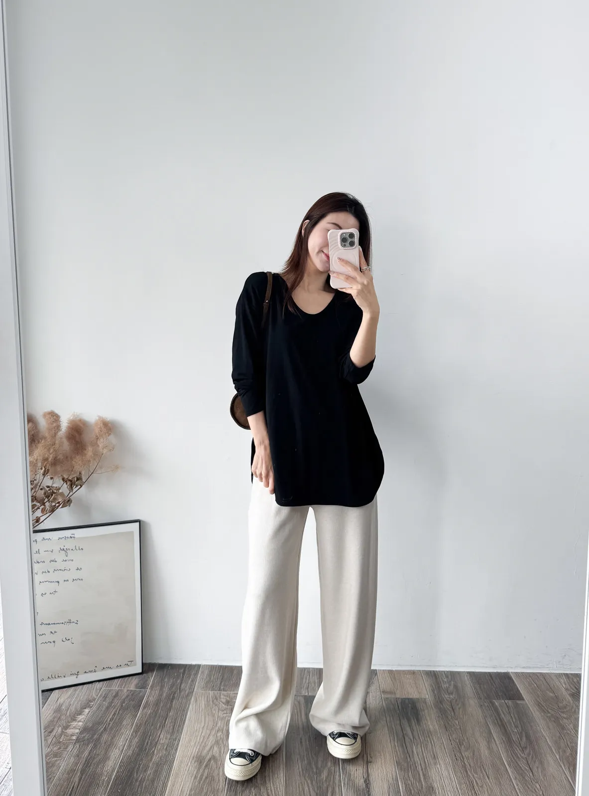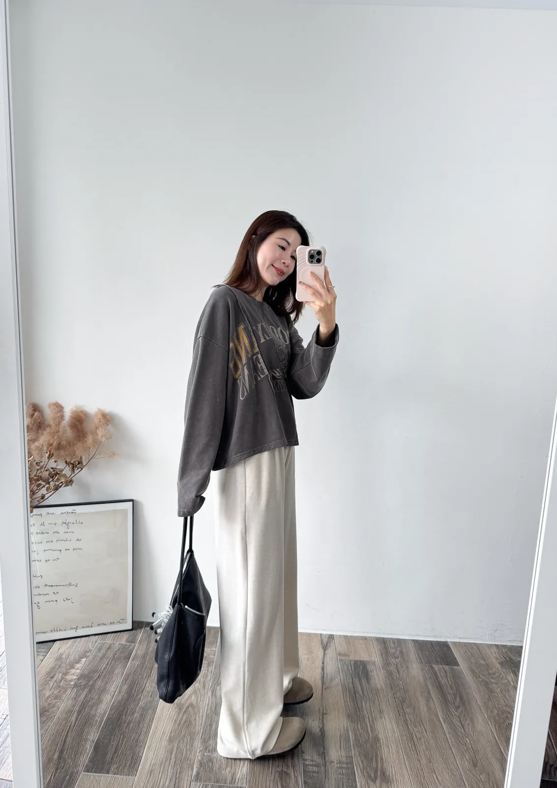 細坑條面/ 有彈性 / 褲頭鬆緊帶 超級舒服的面料~ 外層摸起來柔柔滑滑會忍不住一直摸XD 版型S~L都OK褲頭彈性很大,有口袋(加分) 版型順順的直筒加上布料的垂墜度穿起來非常修身 直筒版型配上冬天大學T好看又舒服!我自己超愛XD *made in china Model 158/48(腰26 臀35.5吋)
