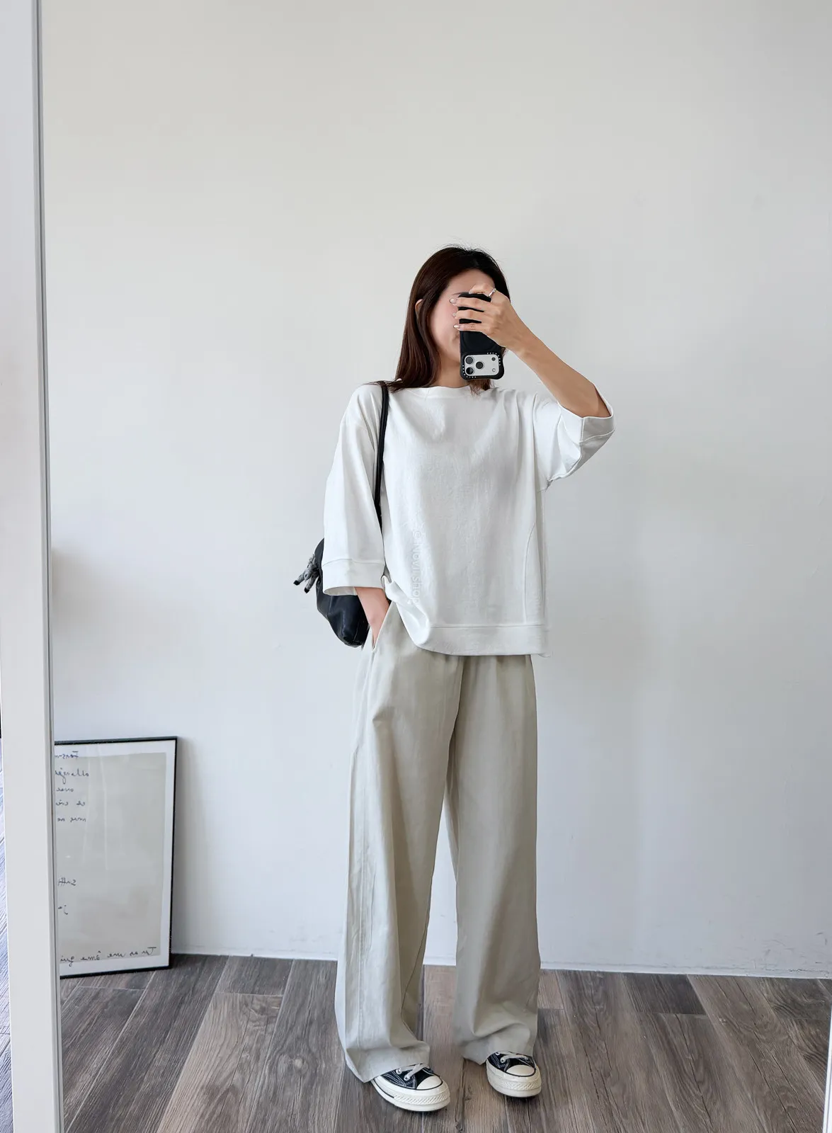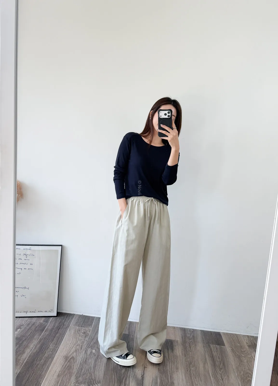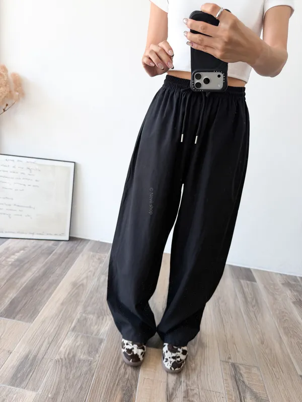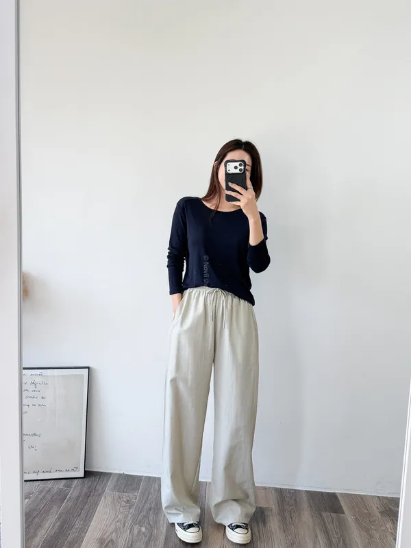 天絲水洗棉 / 些微彈性 / 鬆緊帶+抽繩本來想留著再熱一點賣~因為一穿上好冰涼啊!!!!不過等你們收到應該也慢慢熱了到時可以馬上穿布料很薄~ 整件非常輕盈穿起來不算是有垂度的布料但也完全不會太澎臀圍到小腿都是直筒寬褲感到最後褲管地方有稍微再一點配上寬版鞋剛好可以卡住 Model 158/48 (腰26 臀35.5吋)