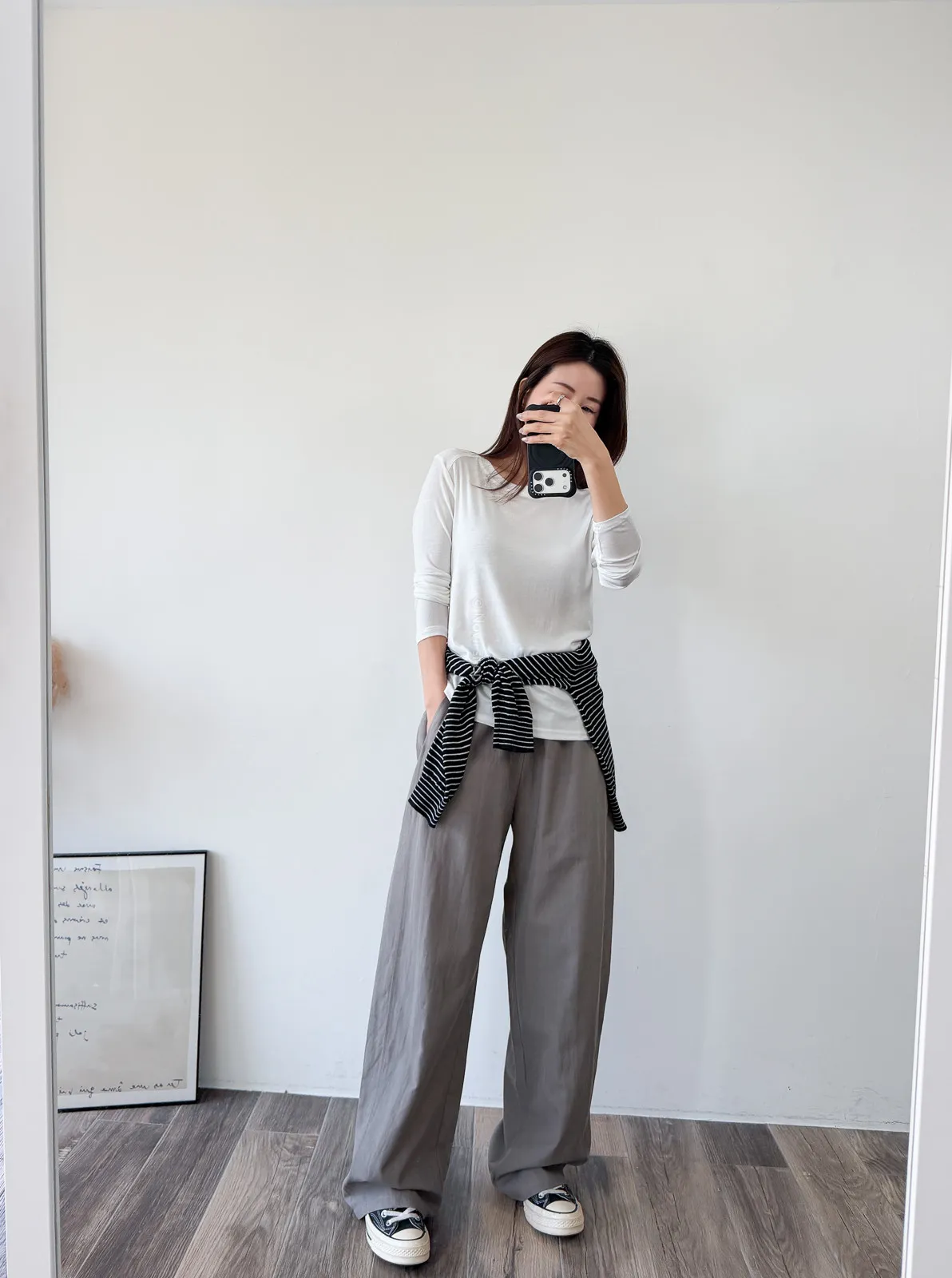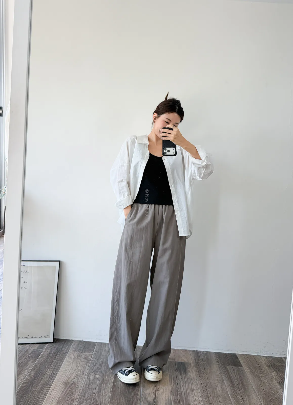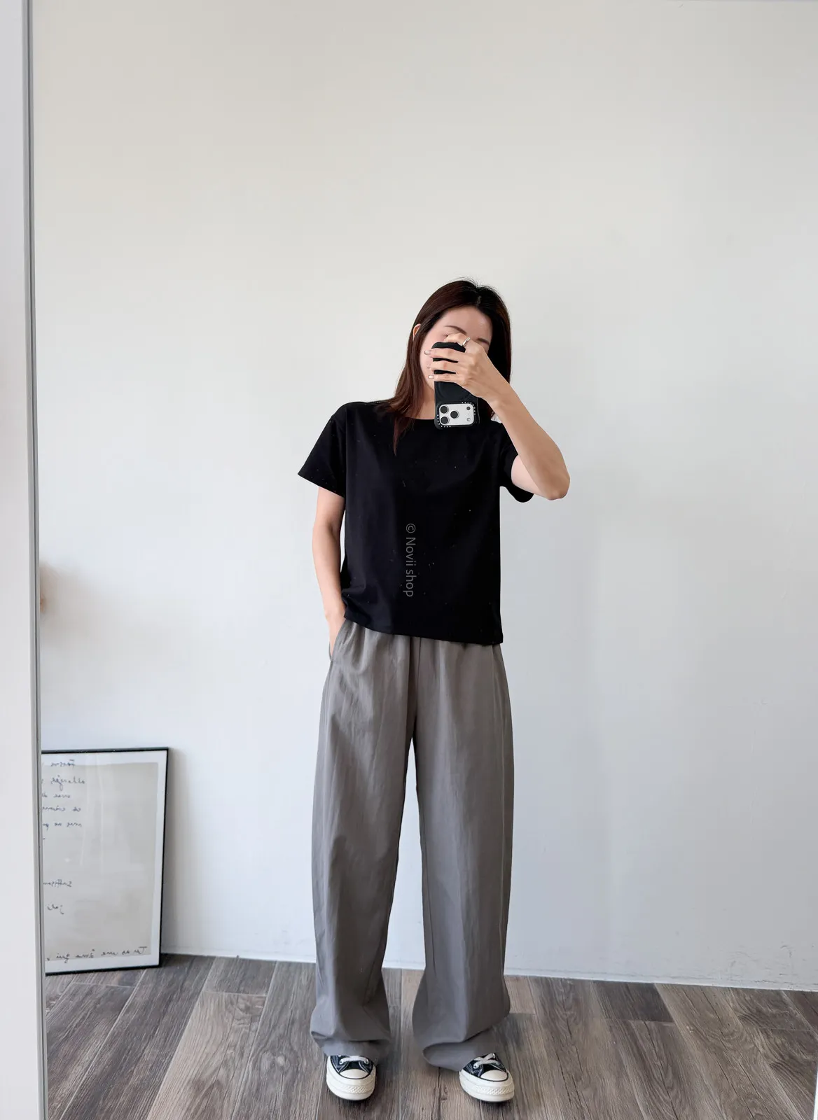 天絲水洗棉 / 些微彈性 / 鬆緊帶+抽繩本來想留著再熱一點賣~因為一穿上好冰涼啊!!!!不過等你們收到應該也慢慢熱了到時可以馬上穿布料很薄~ 整件非常輕盈穿起來不算是有垂度的布料但也完全不會太澎臀圍到小腿都是直筒寬褲感到最後褲管地方有稍微再一點配上寬版鞋剛好可以卡住 Model 158/48 (腰26 臀35.5吋)
