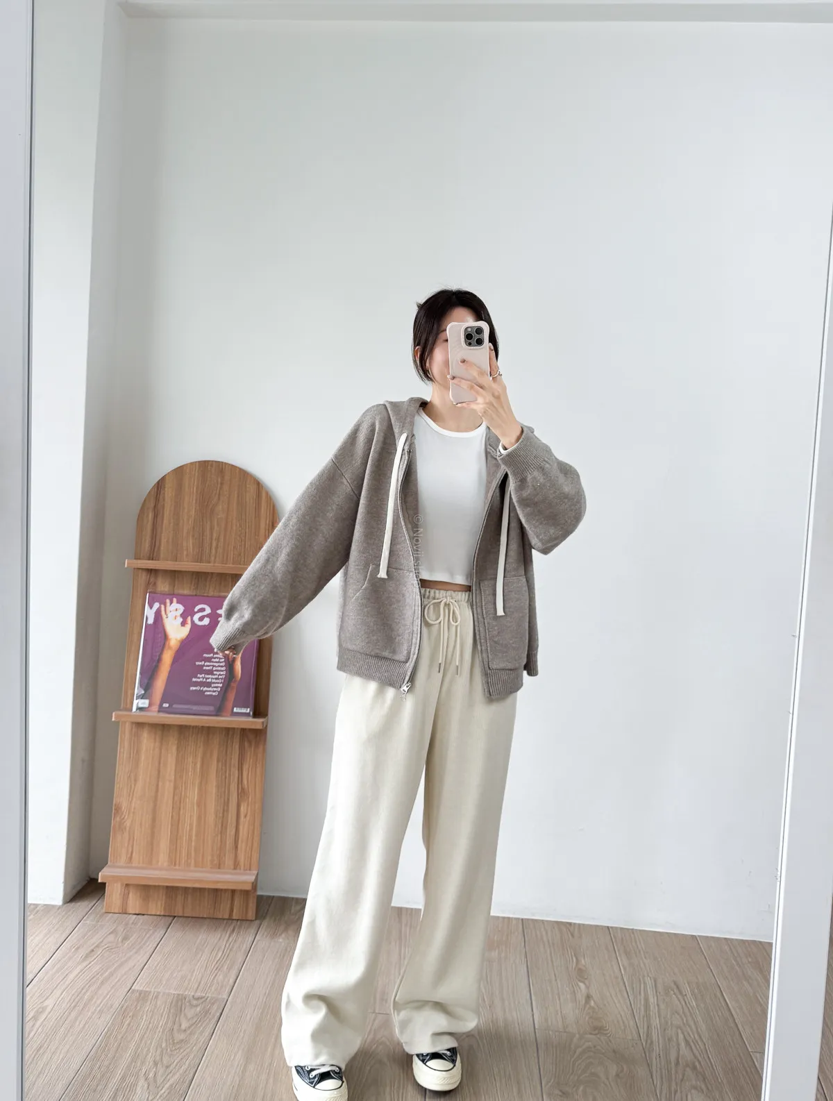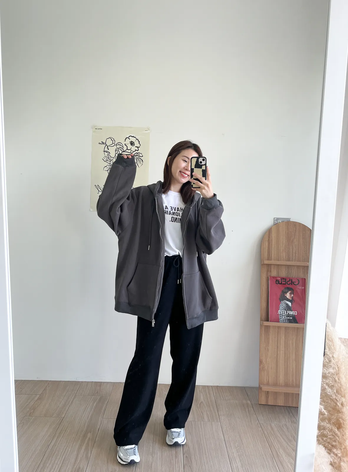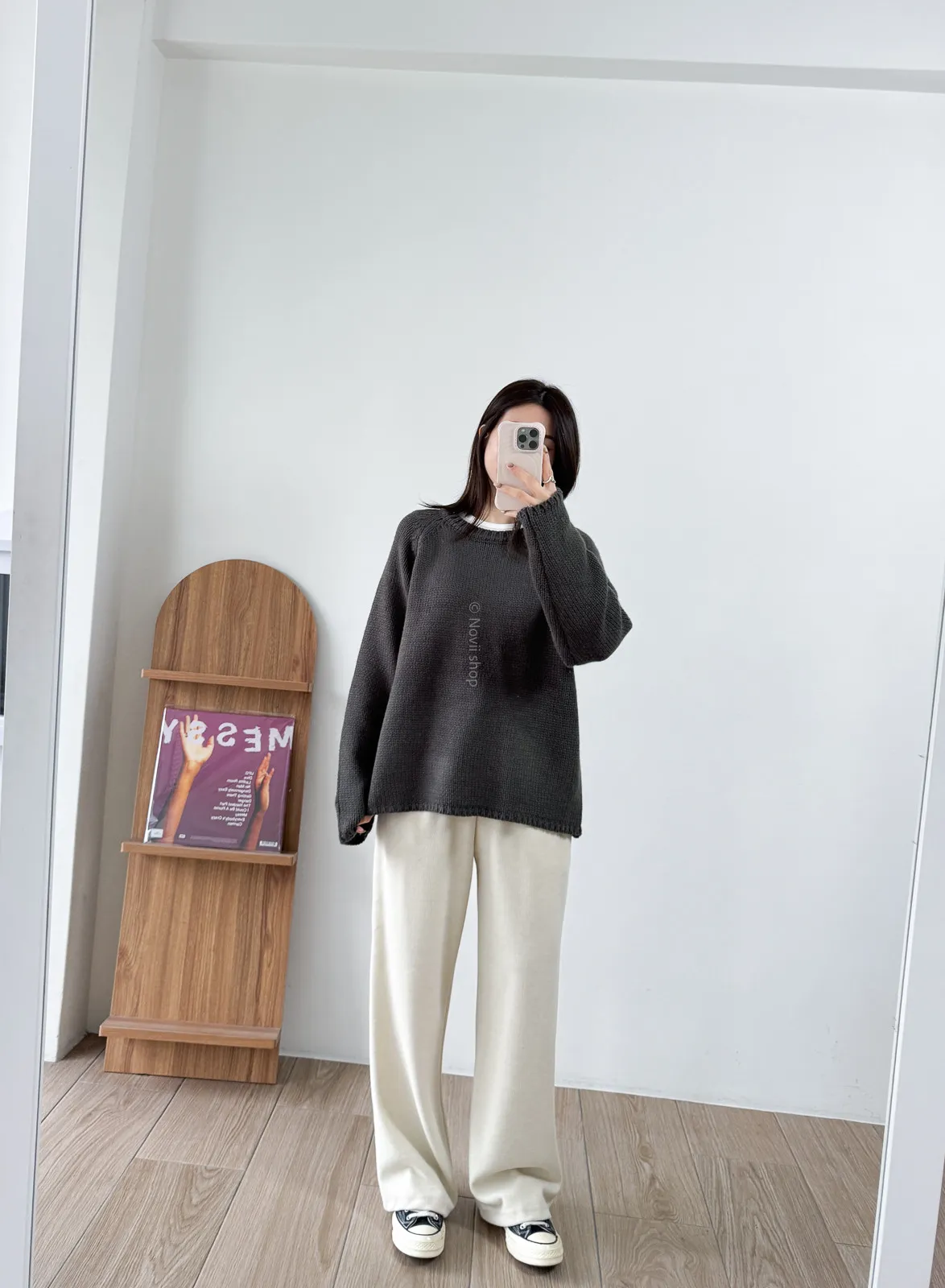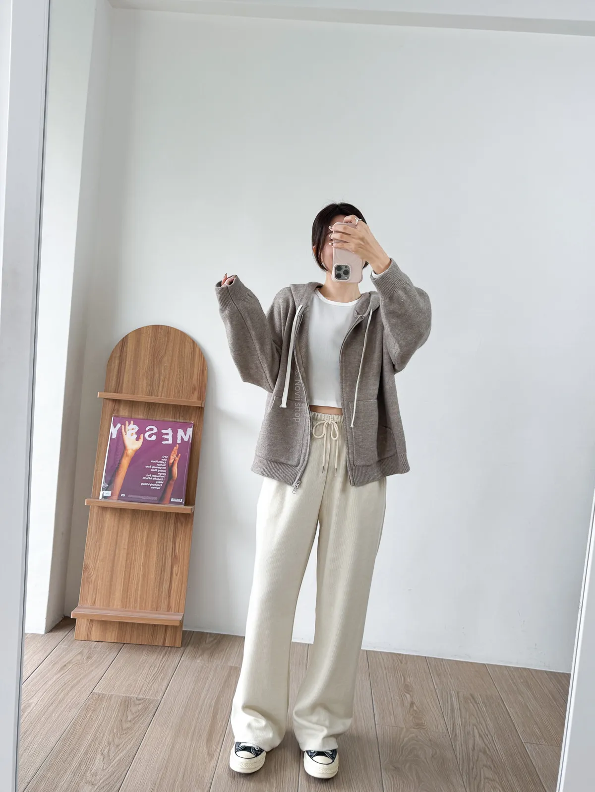棉質 / 有彈性 / 鬆緊帶褲頭+抽繩這件超級舒服的!!!材質非常親膚 垂墜度也很棒微寬鬆版型 把腿修得直直的大腿屁股肉全部藏起來這種完全是我的愛褲~ 要直接包三色的那種XD - model - 阿樂 158/49 (腰26吋/臀35.5吋)