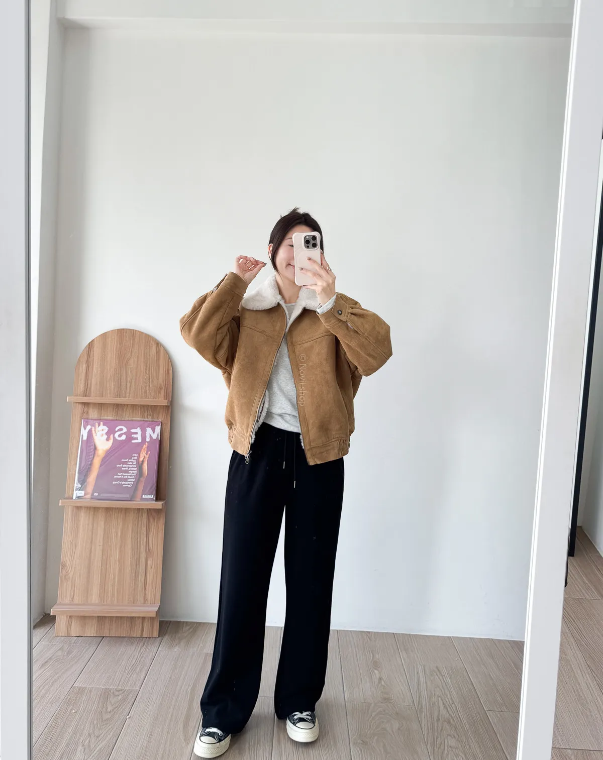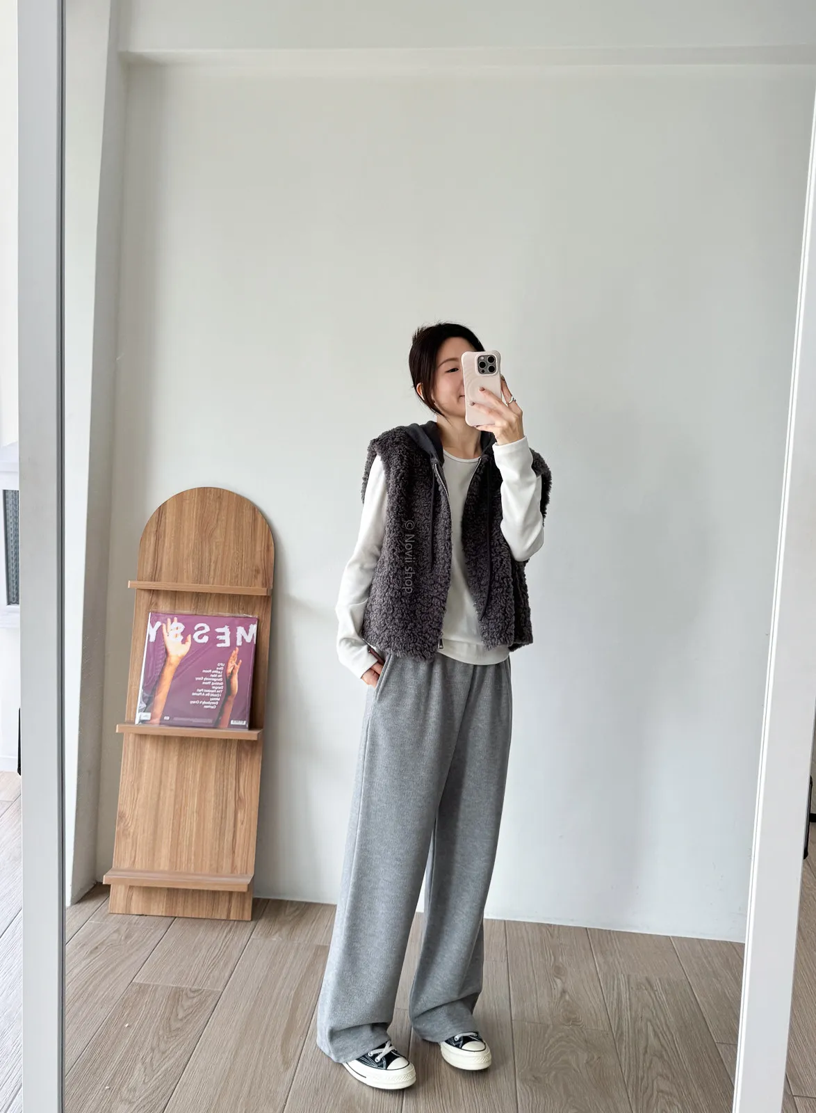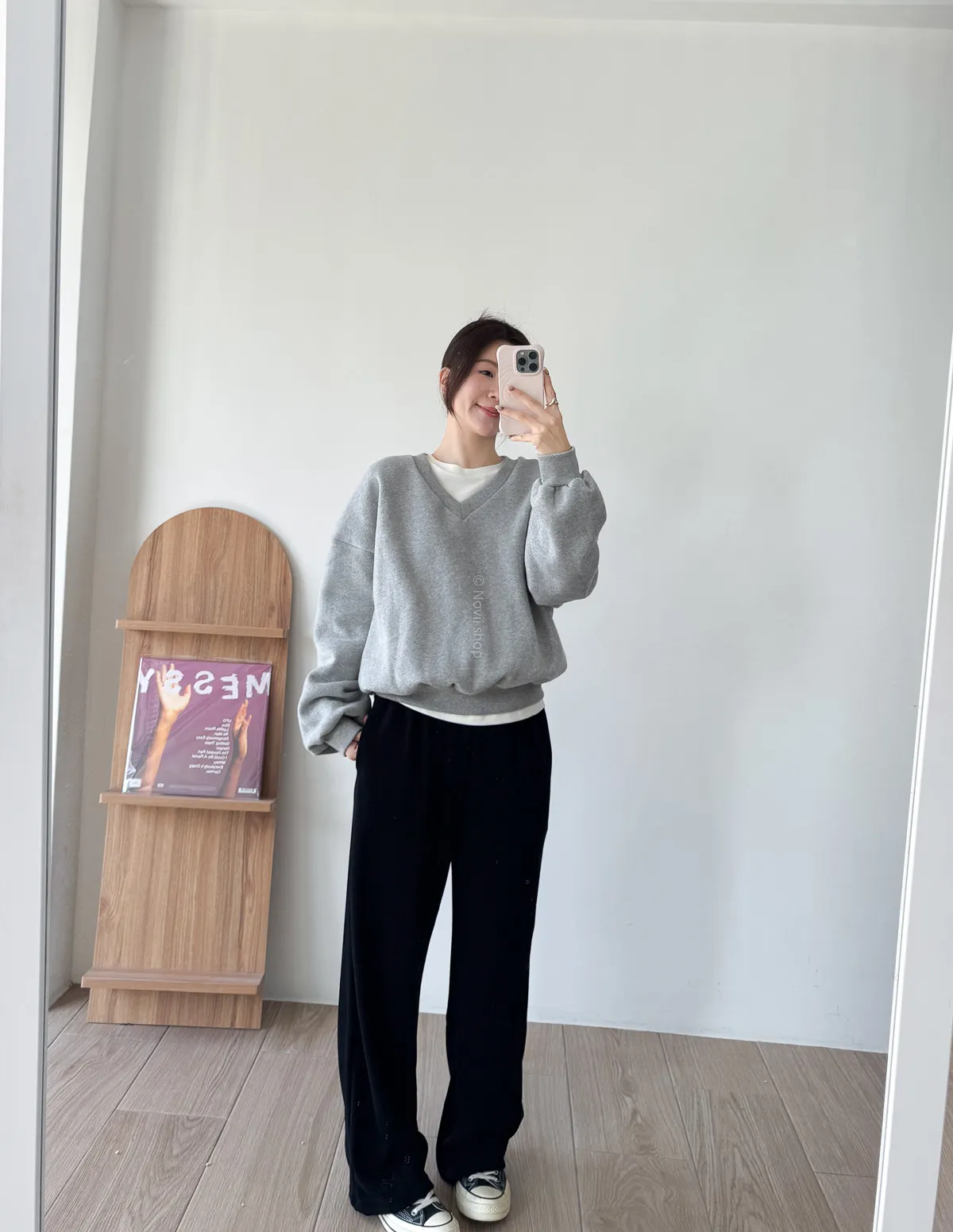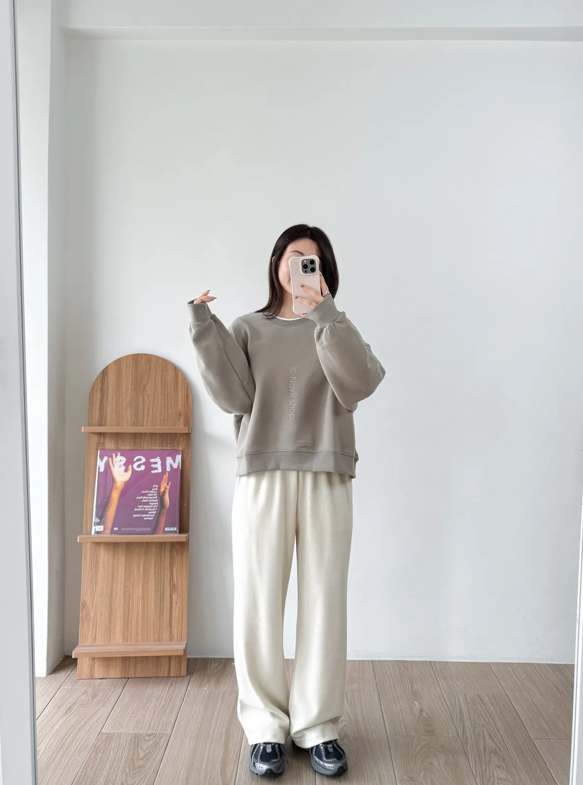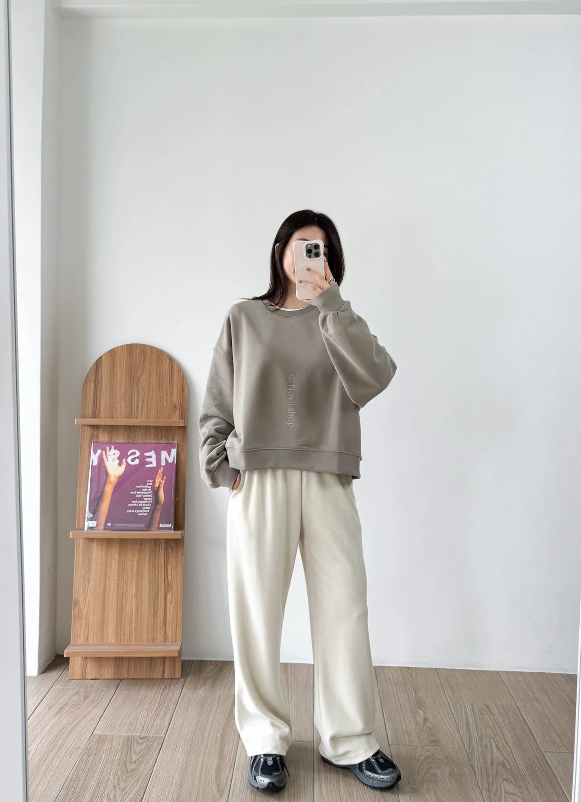 棉質 / 有彈性 / 鬆緊帶褲頭+抽繩這件超級舒服的!!!材質非常親膚 垂墜度也很棒微寬鬆版型 把腿修得直直的大腿屁股肉全部藏起來這種完全是我的愛褲~ 要直接包三色的那種XD - model - 阿樂 158/49 (腰26吋/臀35.5吋)