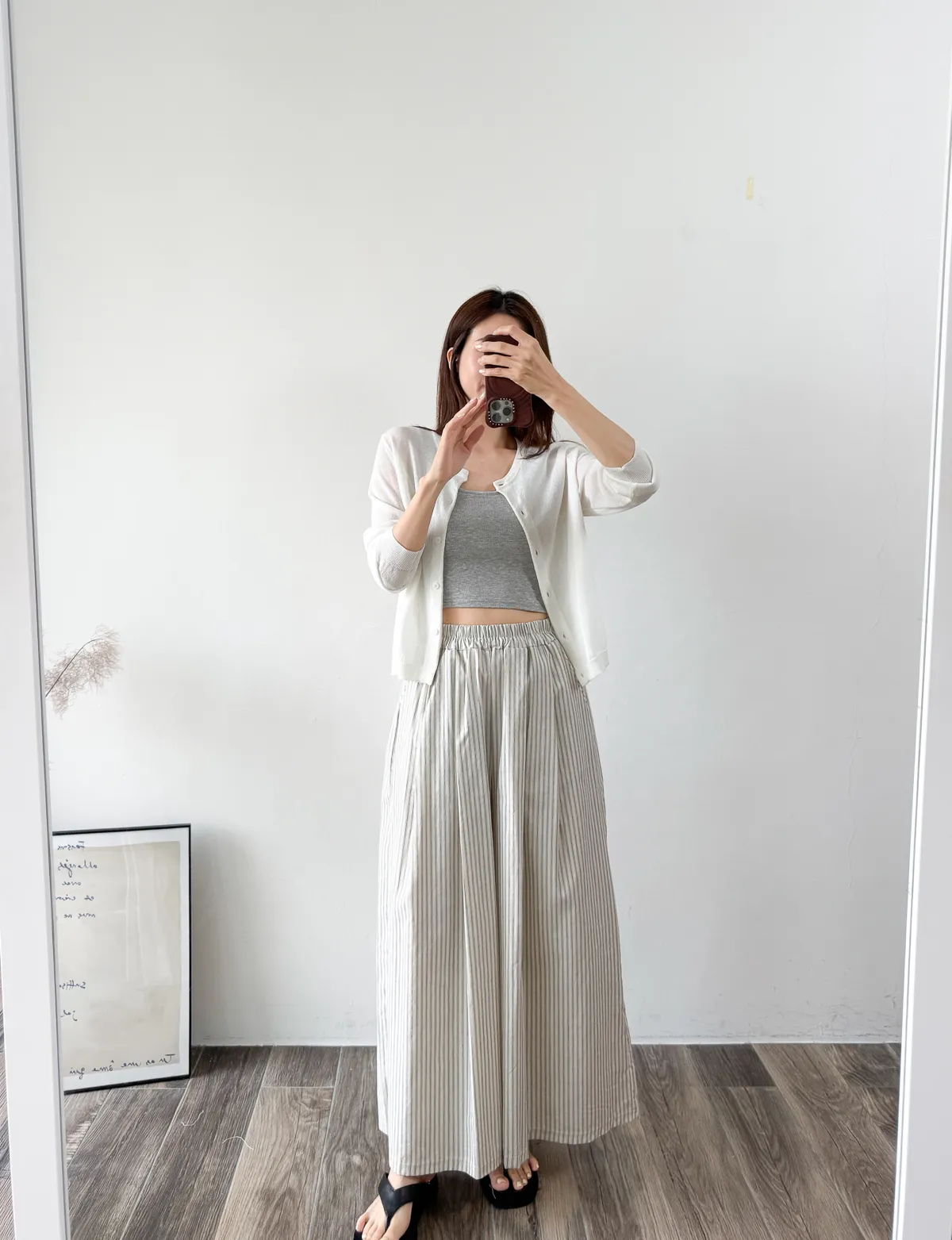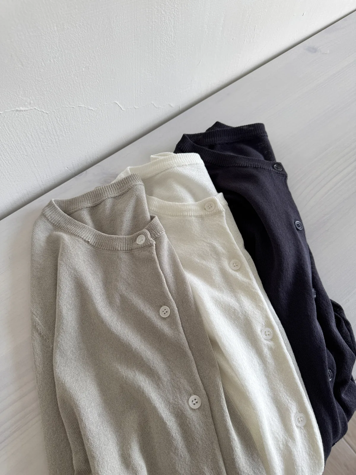 一般常見的針織小外套下擺及袖口收邊都比較寬版,也比較縮感