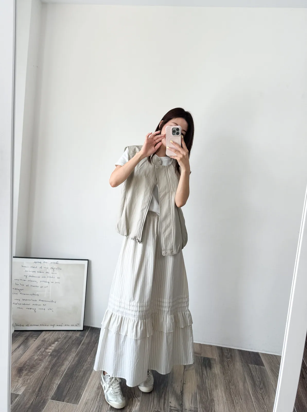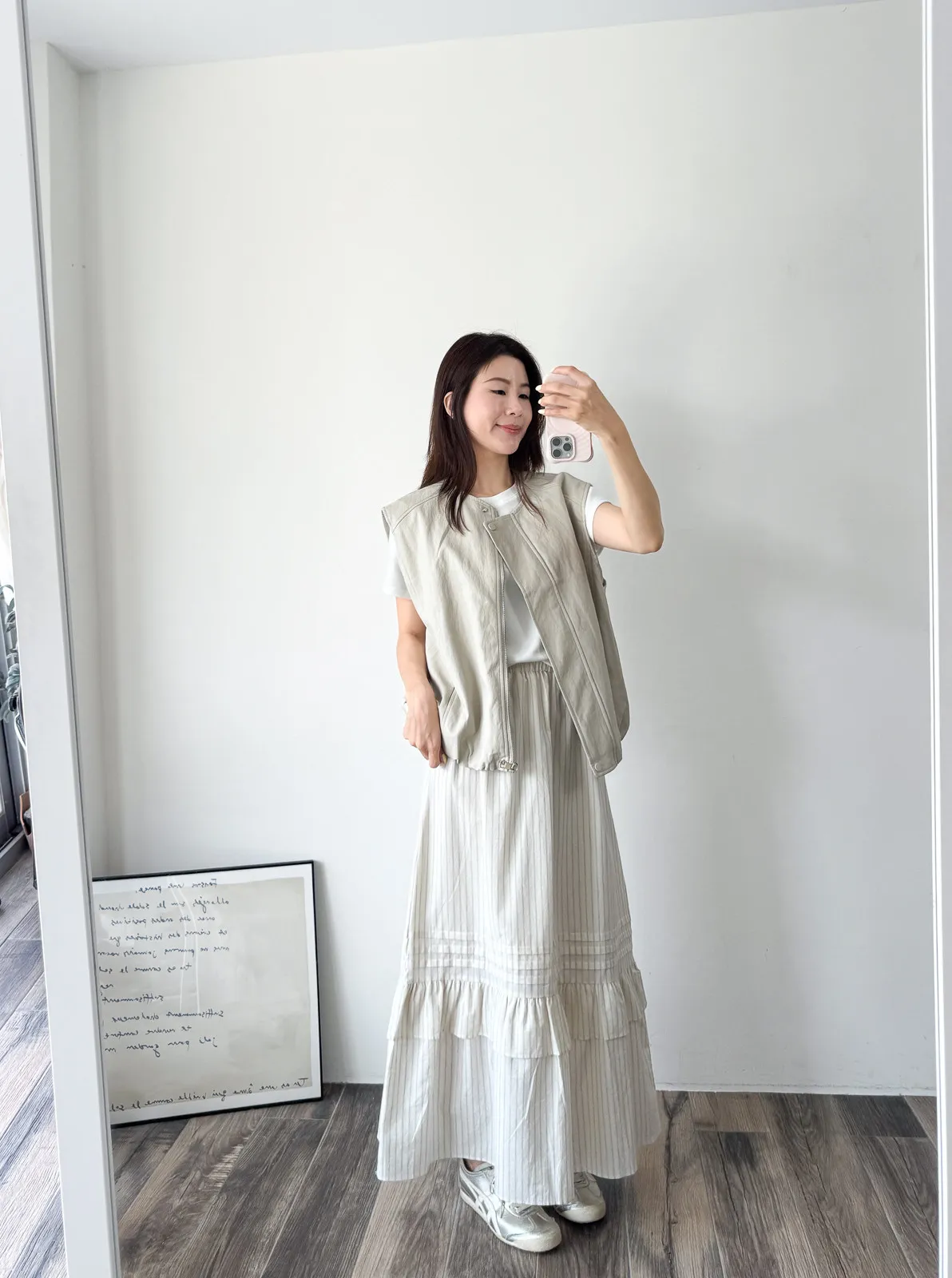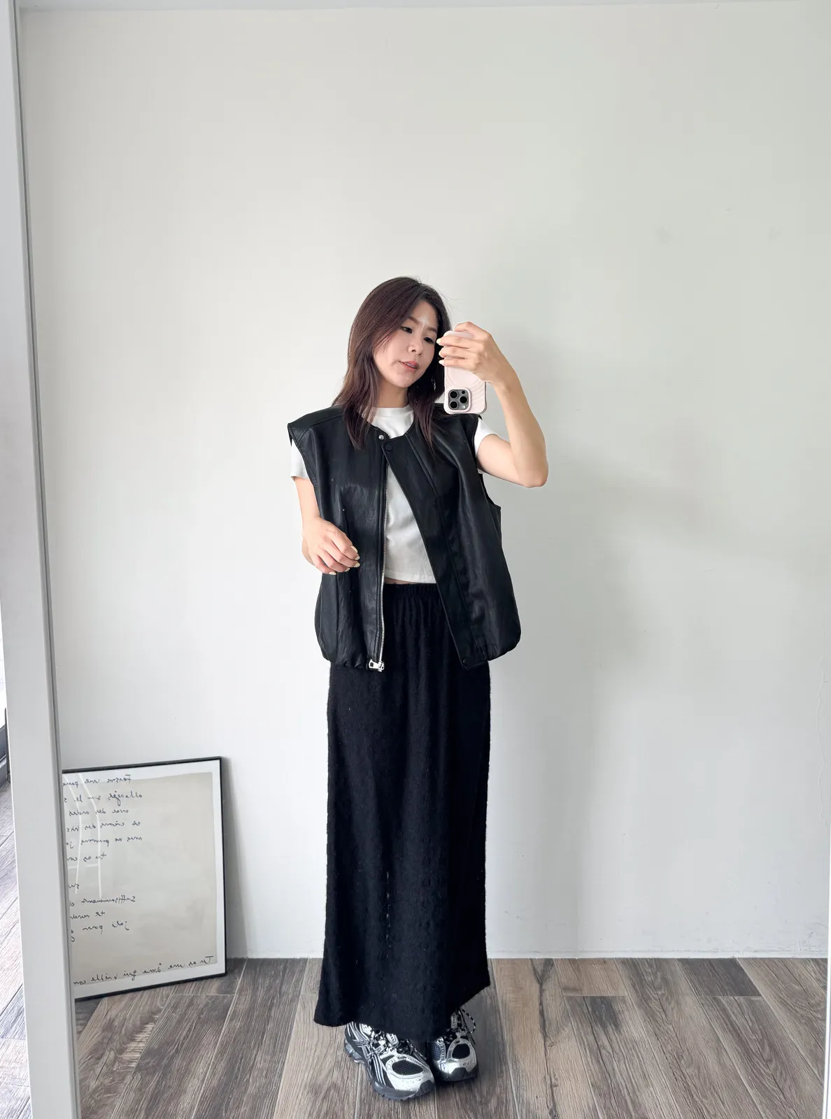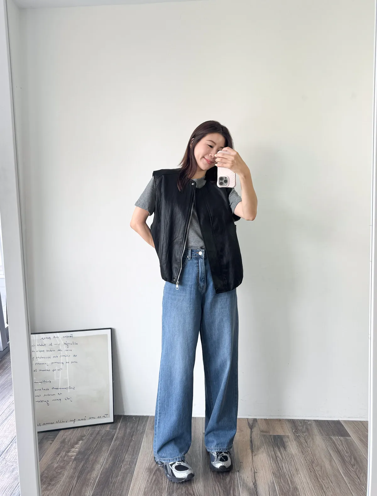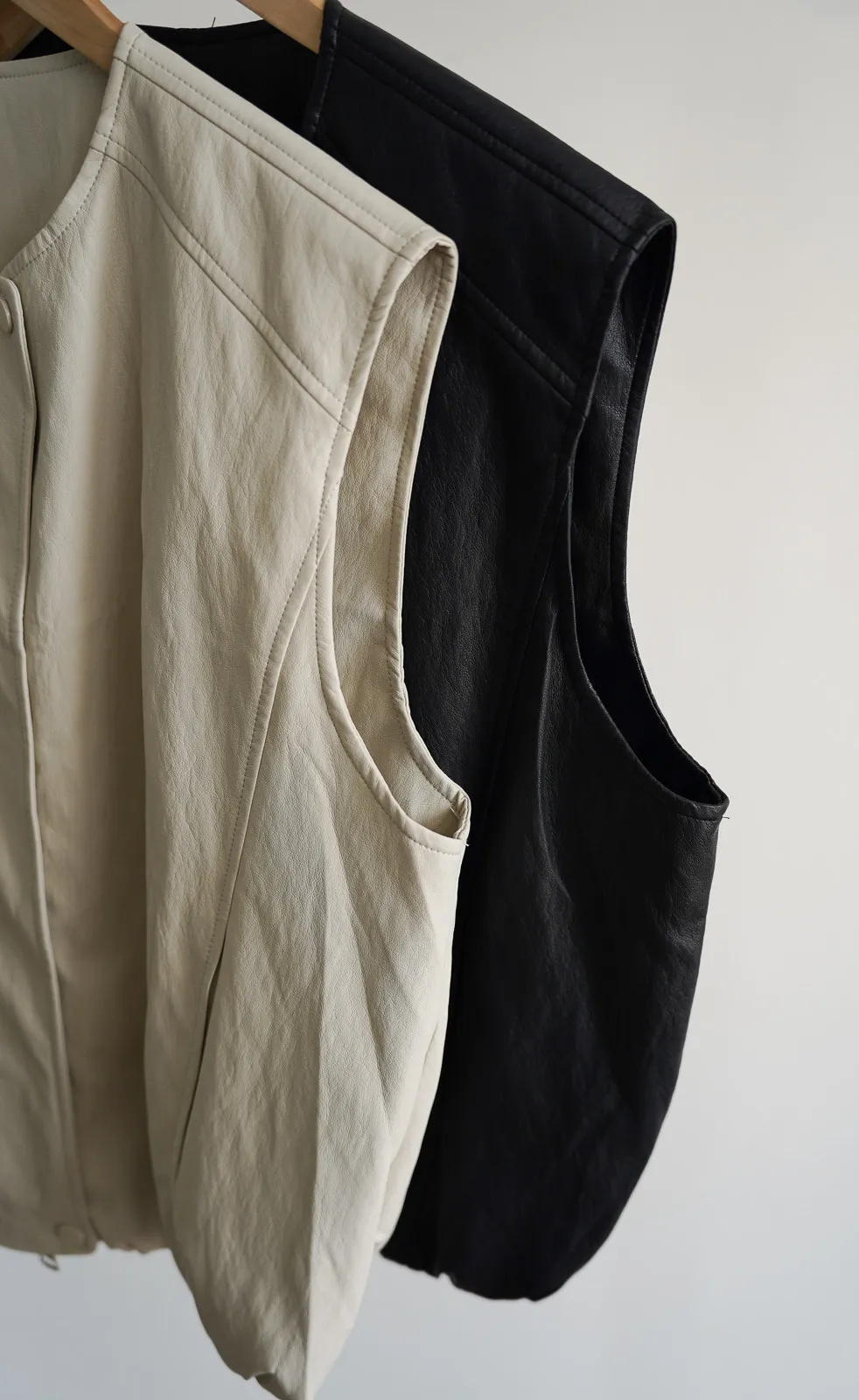 合成皮 / 有內裏 這款皮革背心太可愛了吧!! 隨便配都好看不管褲裝裙裝都難不倒它~ 素素的上衣只要套上它都可以立刻有型 下擺內縮鬆緊設計看起來微微膨感超可愛. 雖然黑色是最經典百搭, 但淺杏色也超級迷人搭配淺色調穿搭很讚! *made in china Model 158/48 (腰25吋 臀35.5吋) detail//