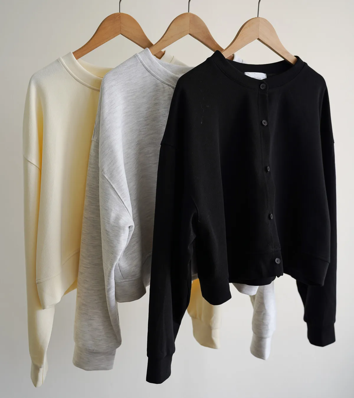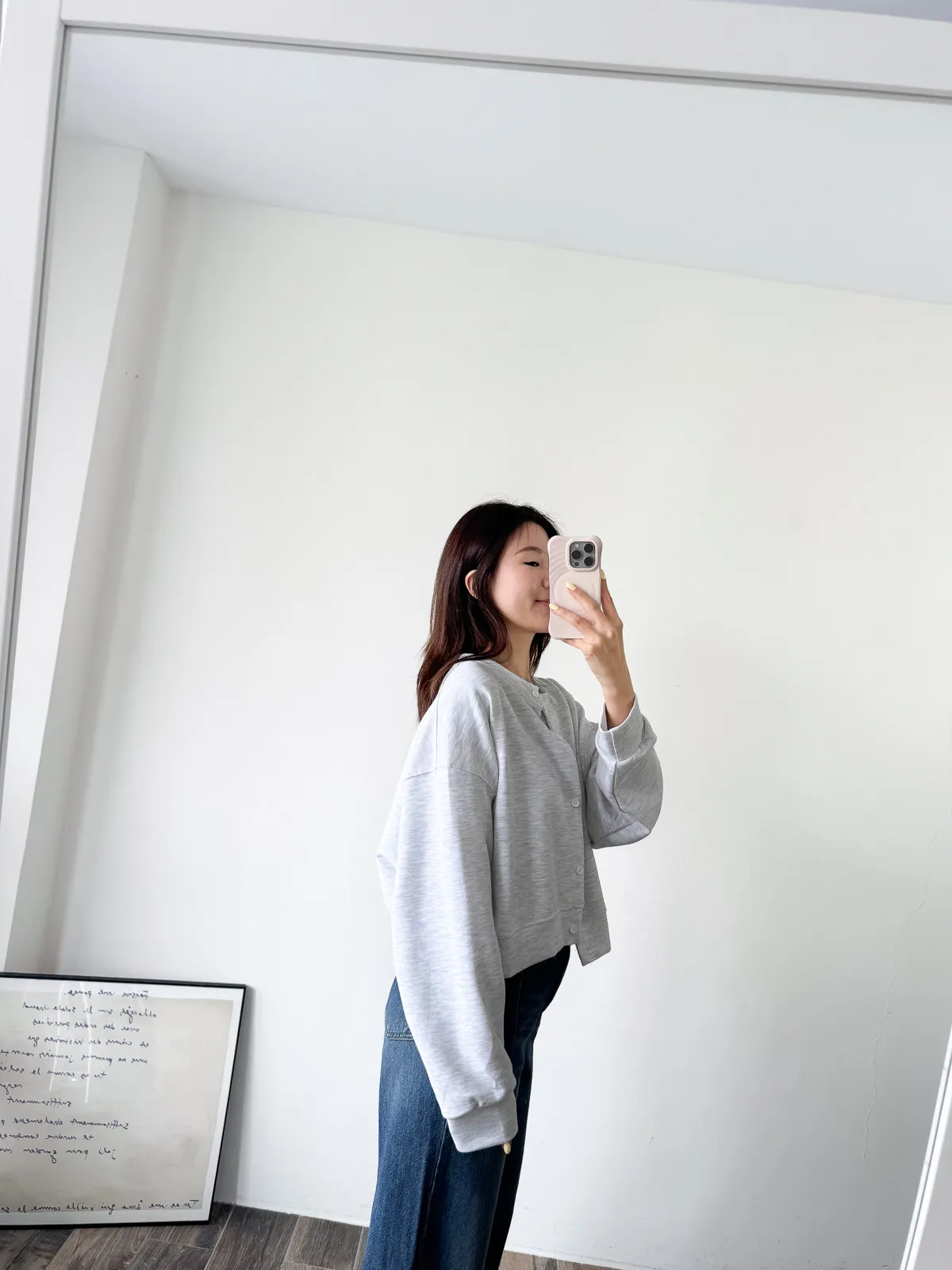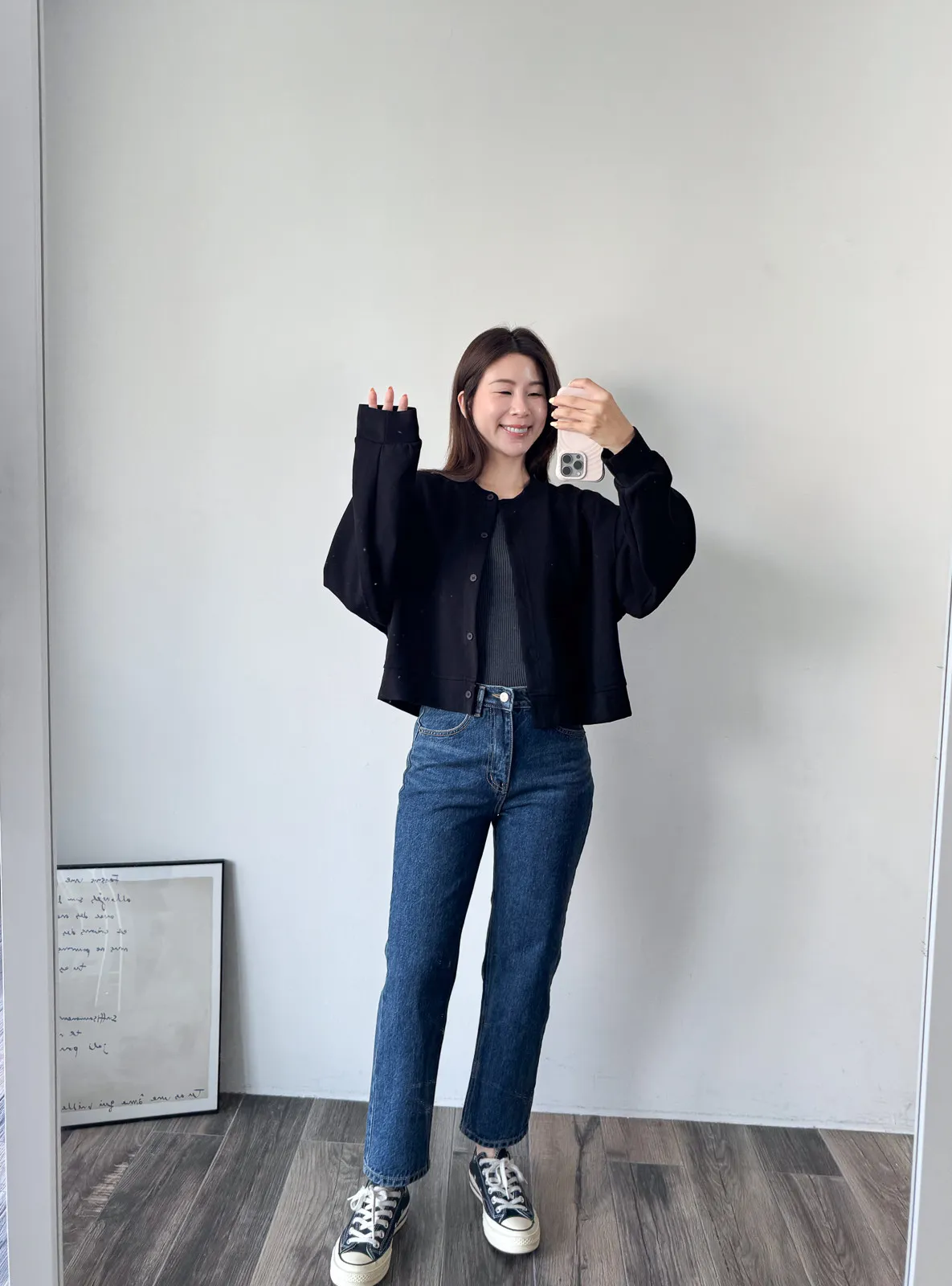 棉質 / 有彈性 版型方方寬鬆短版~穿搭起來比例很讚! 沒有身形的限制人人都可以駕馭 厚薄度剛剛好很適合台灣的秋冬~ 顏色挑了最好搭配的黑白灰三色~ 白是米白~搭配秋冬有點暗色調衣服會更適合 灰色則是淺混灰穿搭起來很活潑! *made in china Model 158/48 (腰25吋 臀35.5吋) detail//