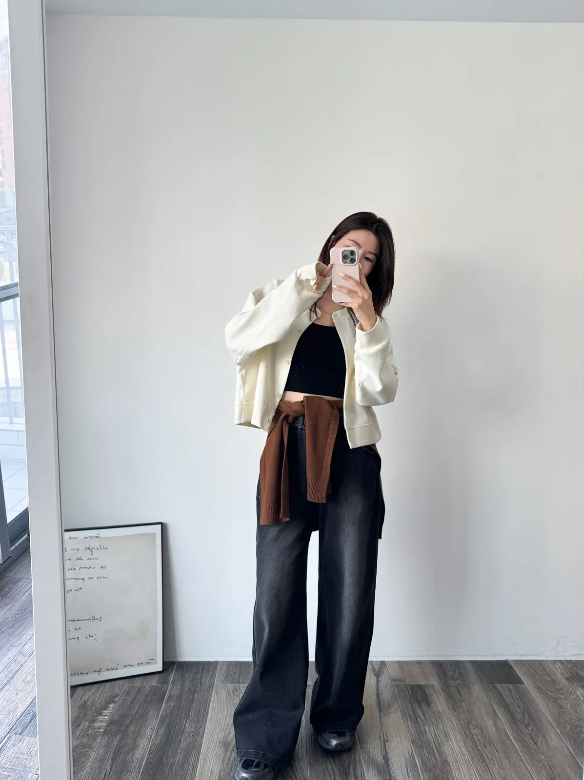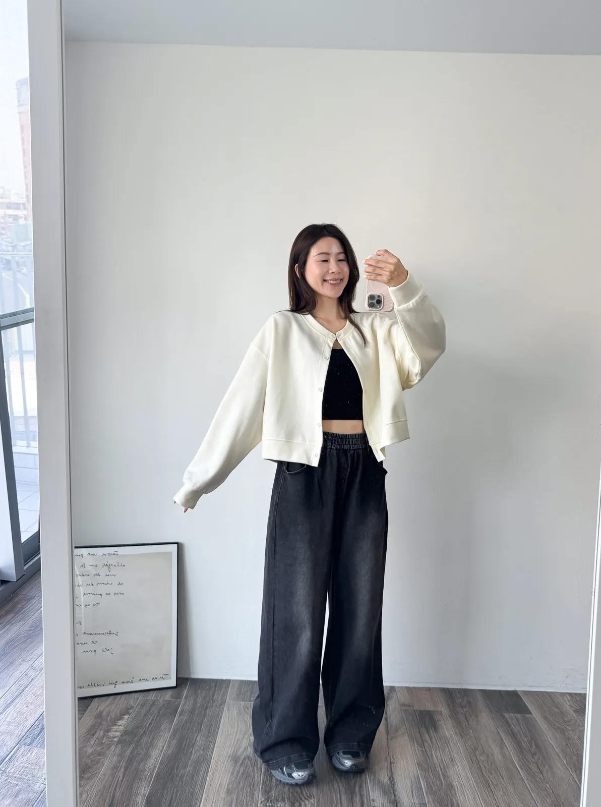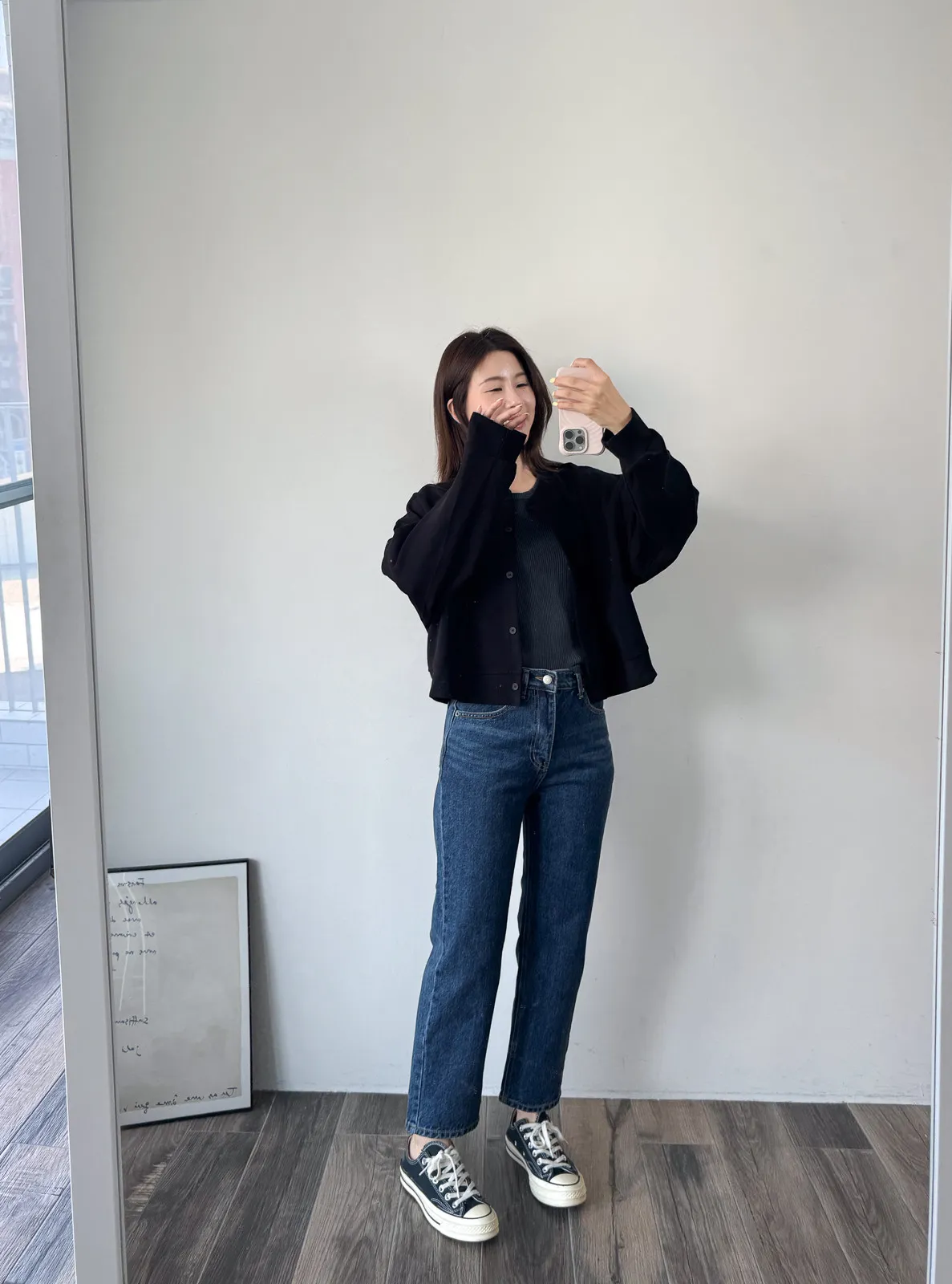 棉質 / 有彈性 版型方方寬鬆短版~穿搭起來比例很讚! 沒有身形的限制人人都可以駕馭 厚薄度剛剛好很適合台灣的秋冬~ 顏色挑了最好搭配的黑白灰三色~ 白是米白~搭配秋冬有點暗色調衣服會更適合 灰色則是淺混灰穿搭起來很活潑! *made in china Model 158/48 (腰25吋 臀35.5吋) detail//