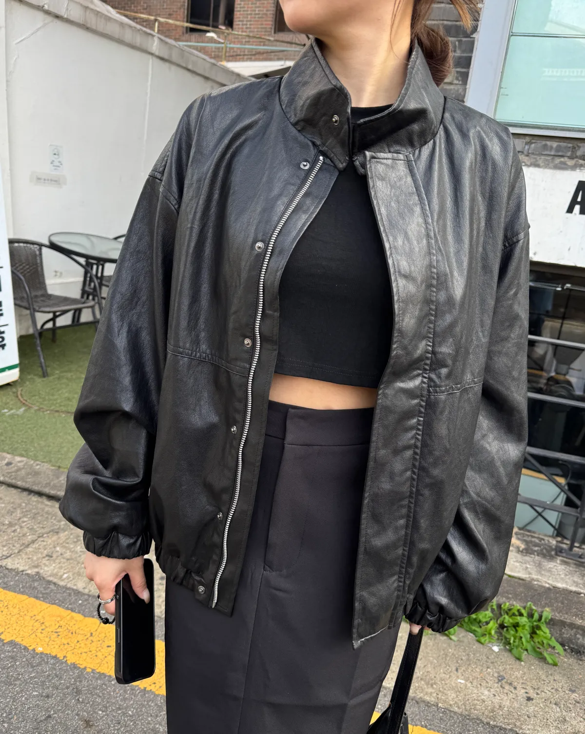 合成皮 / 有內裏 / 無彈性 一直在找一件小立領的皮外套 而且下擺的縮口鬆緊帶不要太寬版~ 最重要是~版型好看皮質要有質感 幾乎每一家廠商都會出一件皮外套 我們就這樣翻了大概100件~尋尋覓覓 選了最最最喜歡的一款~ 超級滿意啊!!! 而且整體穿在身上沒有負擔感 各種身形都可以駕馭! 皮外套每年春秋換季必備~ 不管幾年都不會退流行 必須多多收藏呀! Model 158/48 (腰26吋 臀35.5吋) detail/
