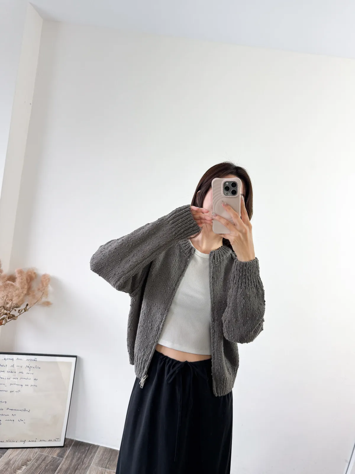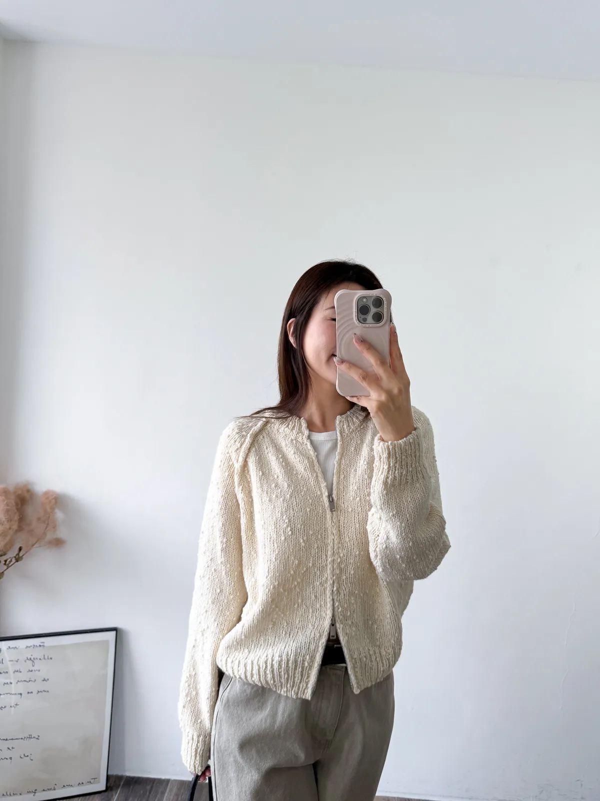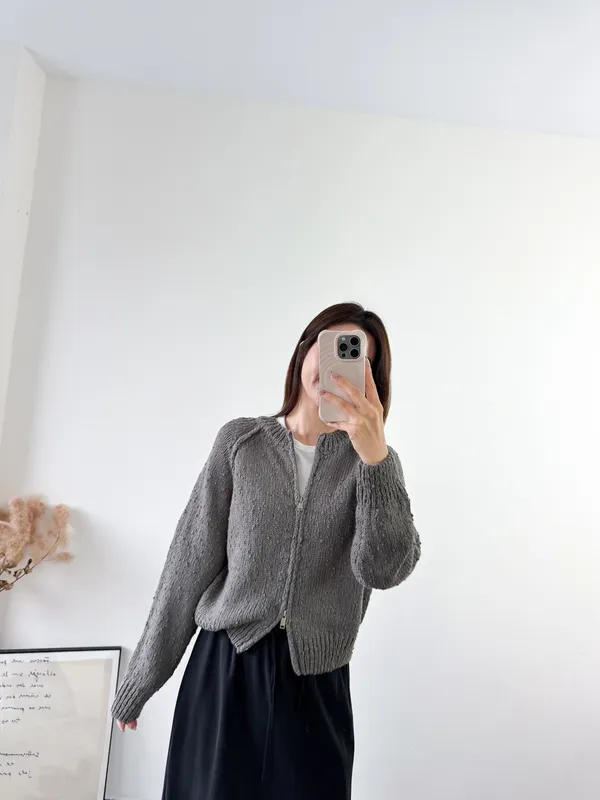 針織料 / 有彈性 第一眼看到立刻買下! 好喜歡布料上的立體點點~ 好可愛 而且材質很舒服一點都不刺膚 雙向拉鍊設計可以依照的當天穿搭自由調整! 米白經典好搭配~灰色算是比較小外套類比較特別色調 純色的深灰色黃光下又會帶一點點咖的感覺~很曖昧 很美! Model 158/48 (腰26吋 臀35.5吋) detail/