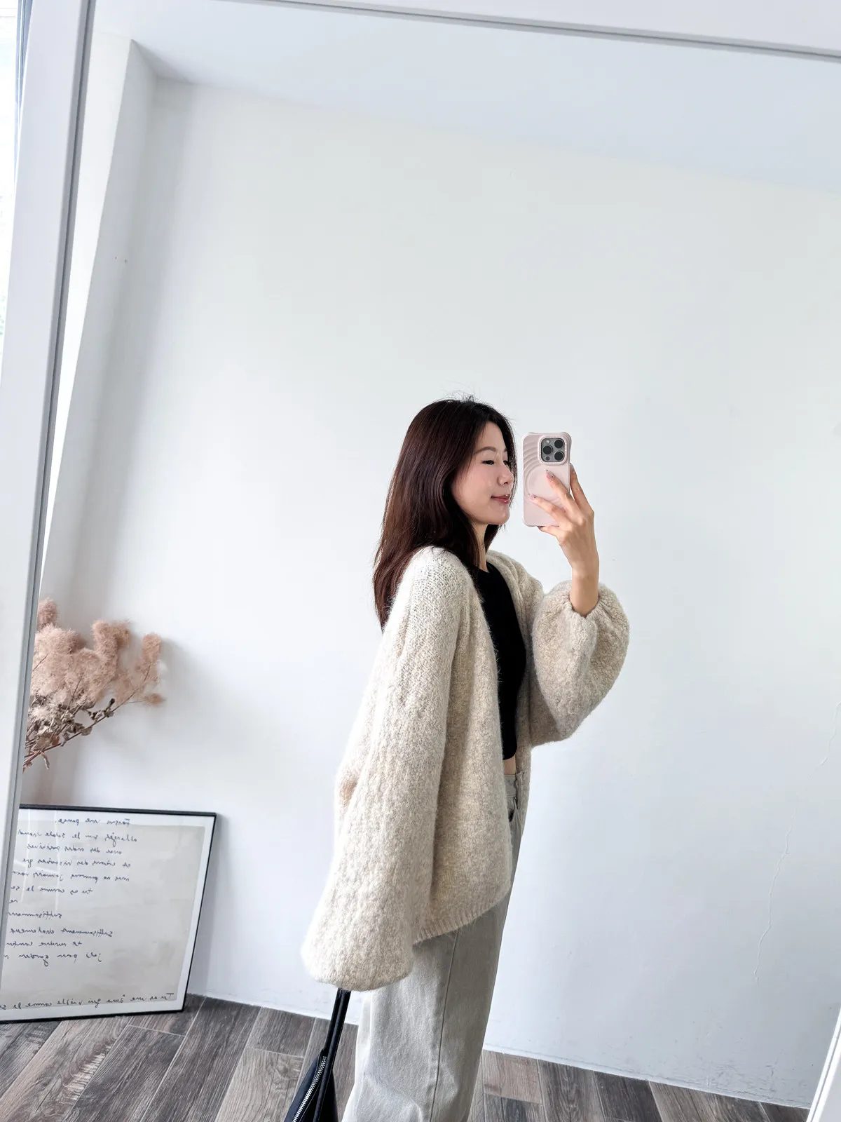 粗針織 / 有彈性 好久沒有進的泡袖外套~ 因為好久沒看到這麼迷人的拋袖~這膨度很難不愛啊XD 衣長剛好可愛蓋屁股不過又不會過長吃掉比例 材質不會刺膚整件非常Q彈! 三色都是混色針織裡面簡單配一件素T就很有型了. Model 158/48 (腰26吋 臀35.5吋) detail/