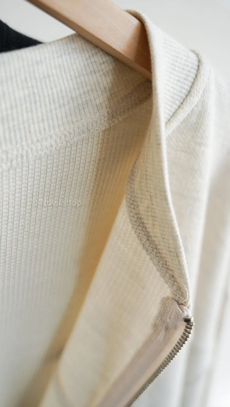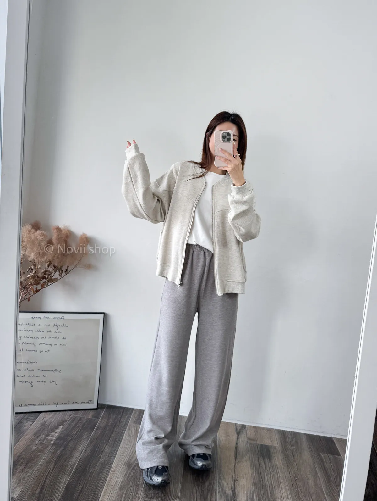 棉質 / 有彈性 偏薄料的棉質不怕冷或是城市比較溫暖的話可以入手這件! 版型不會太大太小寬鬆度適中! 雖然類似版型的款式很多 但這款的領口滾邊不會太粗曠垂墜度也很讚. 不會太man 也不會太過休閒 總之我覺得算是很實搭的版型和款式~ Model 158/48(腰26 臀35.5吋) detail/