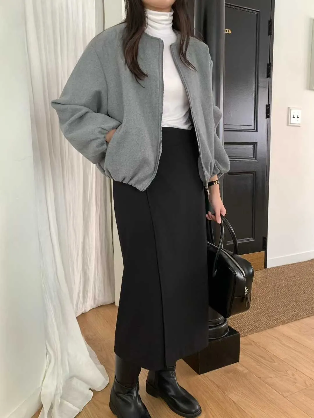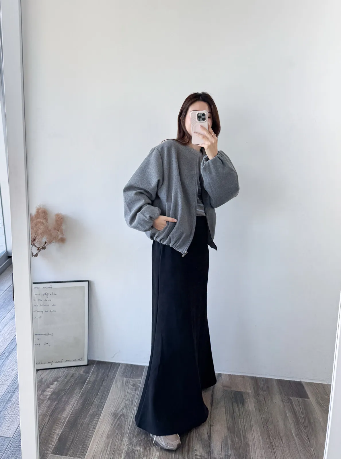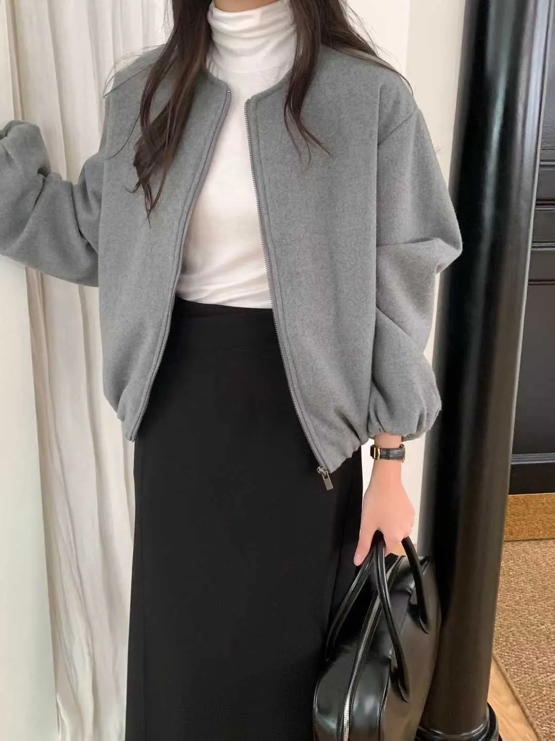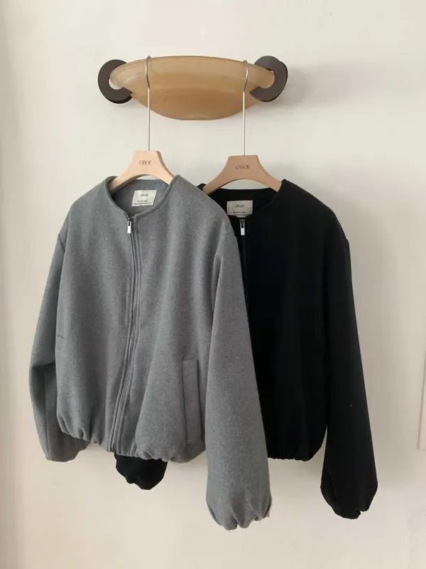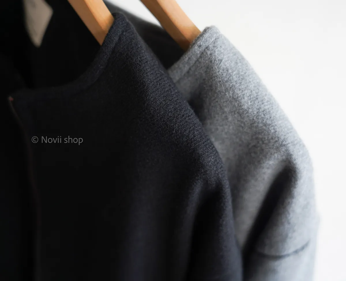 Wool 20% / 有內裏 / 無彈性 極簡版型~ 無領設計下擺還有內縮QQ邊! 如果平常不喜歡穿太厚重外套的話 這款很推薦唷~ 輕鬆好駕馭 而且布料質感也好讚吶! Model 158/48(腰26 臀35.5吋) detail/