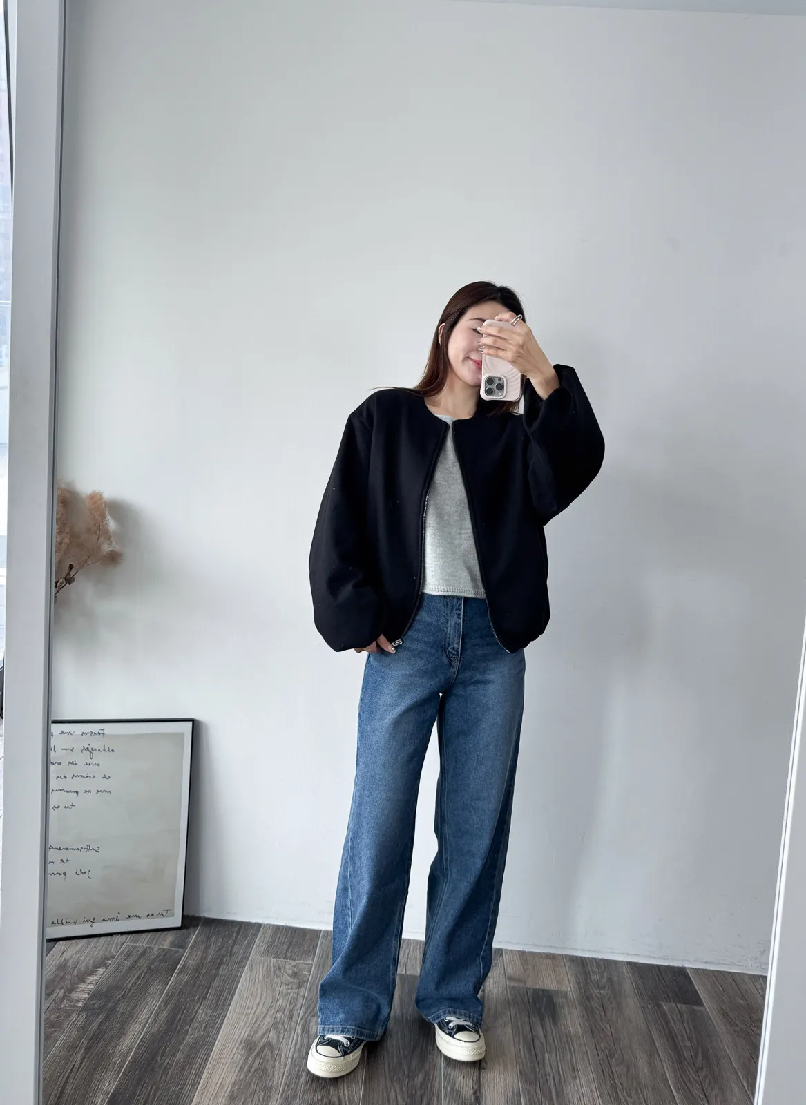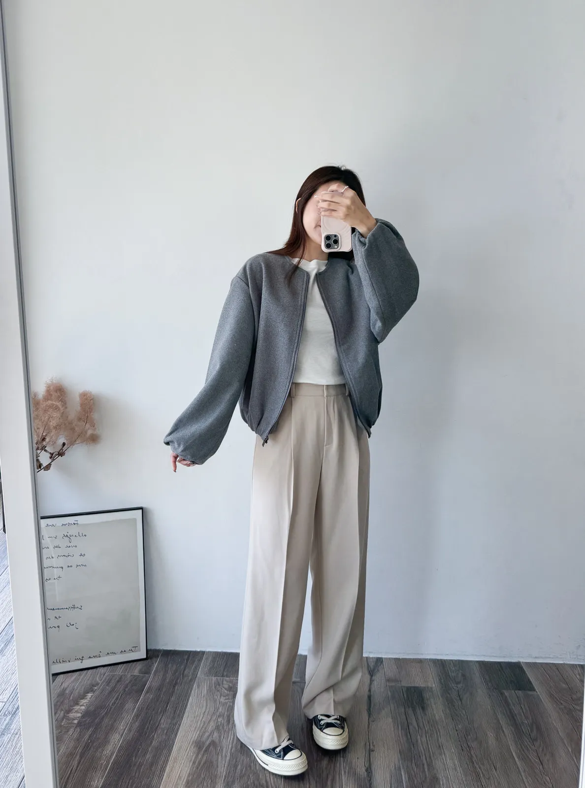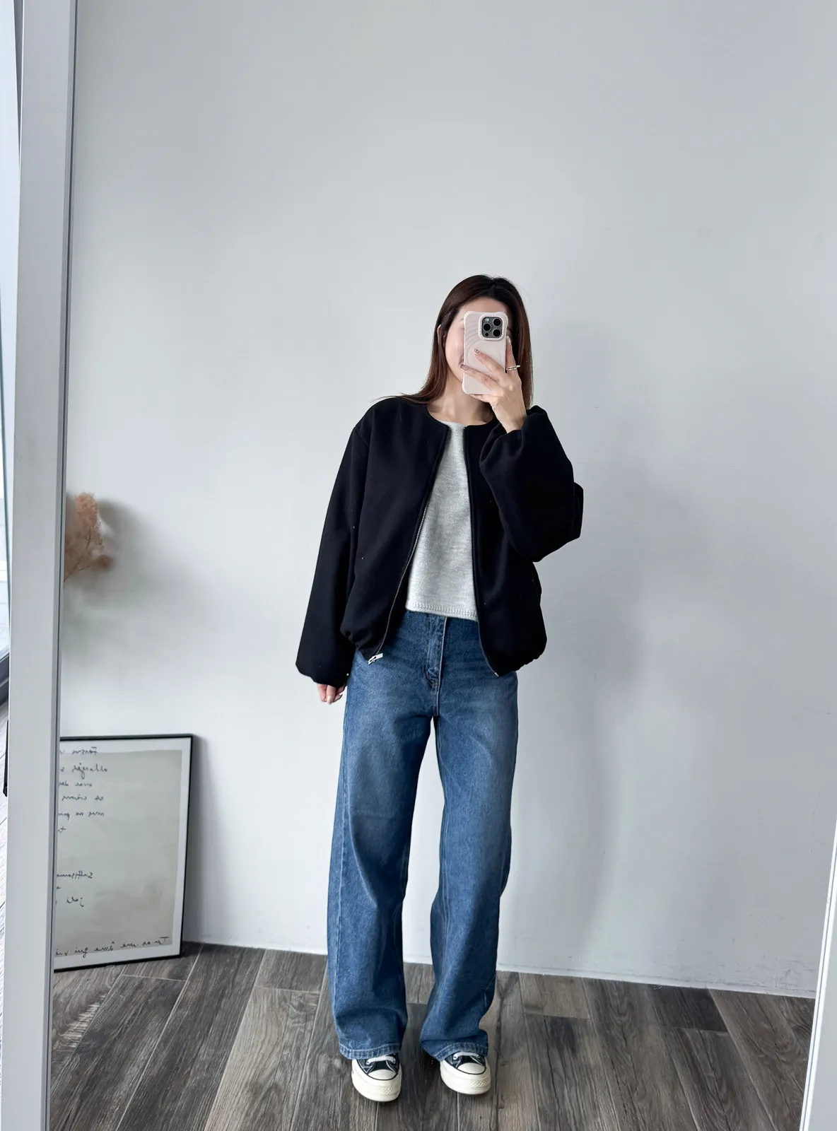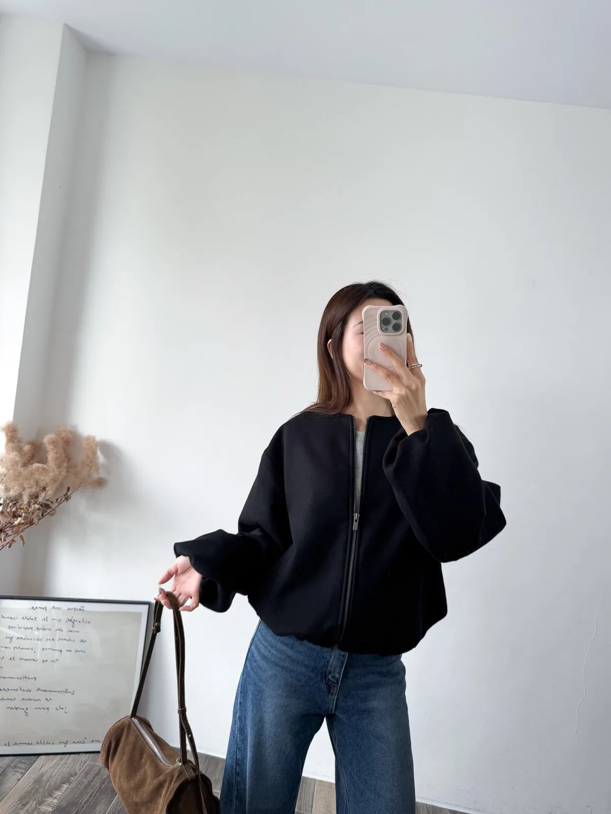 Wool 20% / 有內裏 / 無彈性 極簡版型~ 無領設計下擺還有內縮QQ邊! 如果平常不喜歡穿太厚重外套的話 這款很推薦唷~ 輕鬆好駕馭 而且布料質感也好讚吶! Model 158/48(腰26 臀35.5吋) detail/