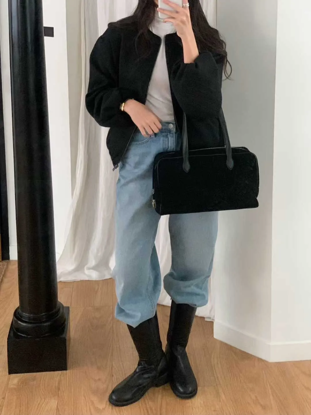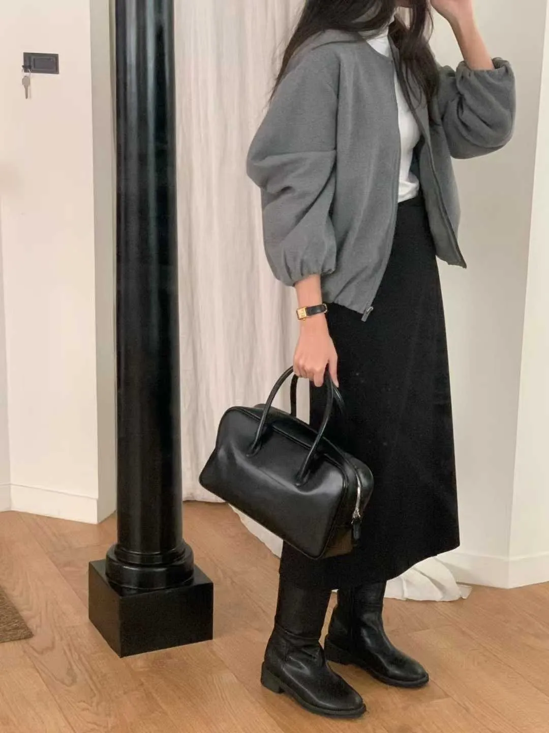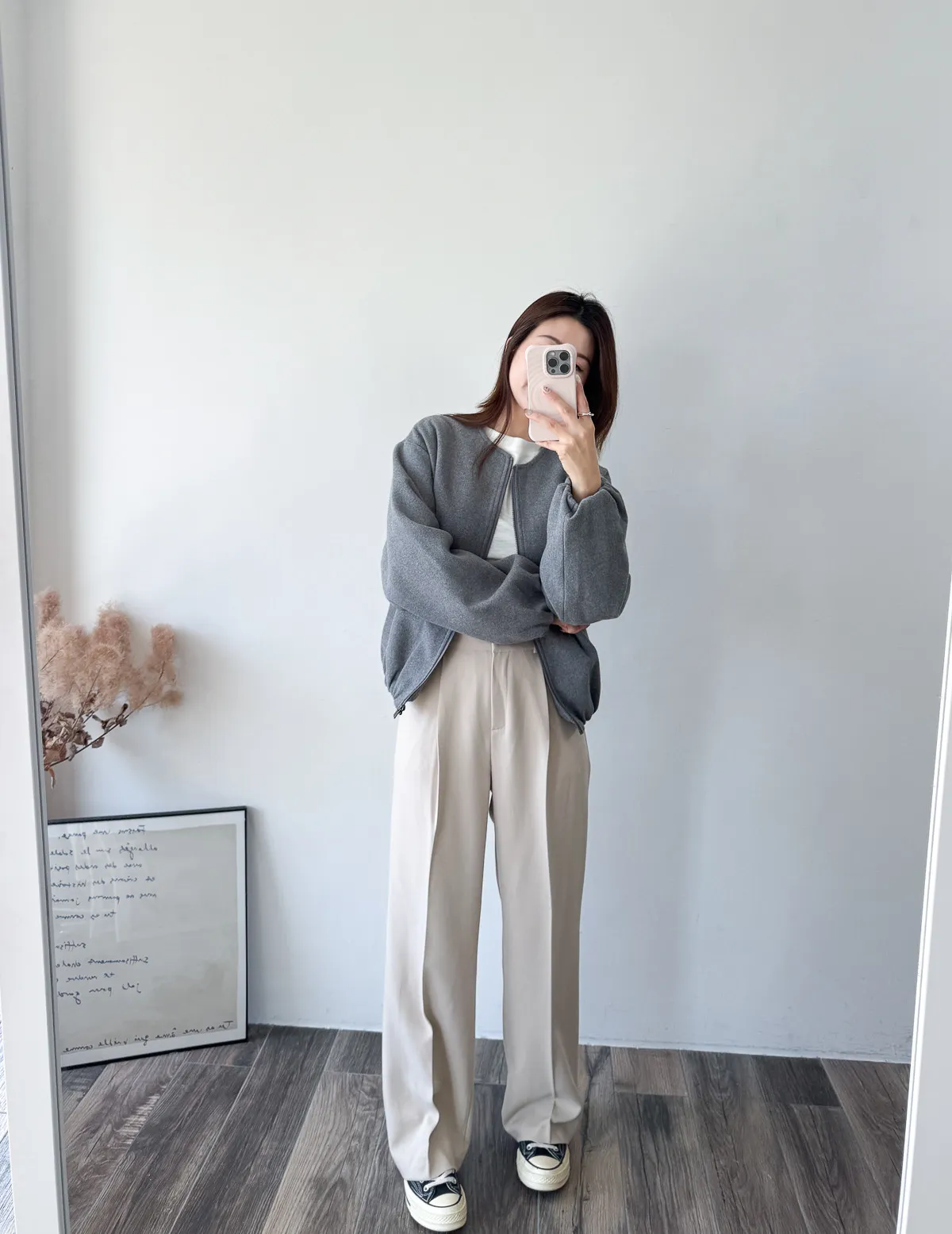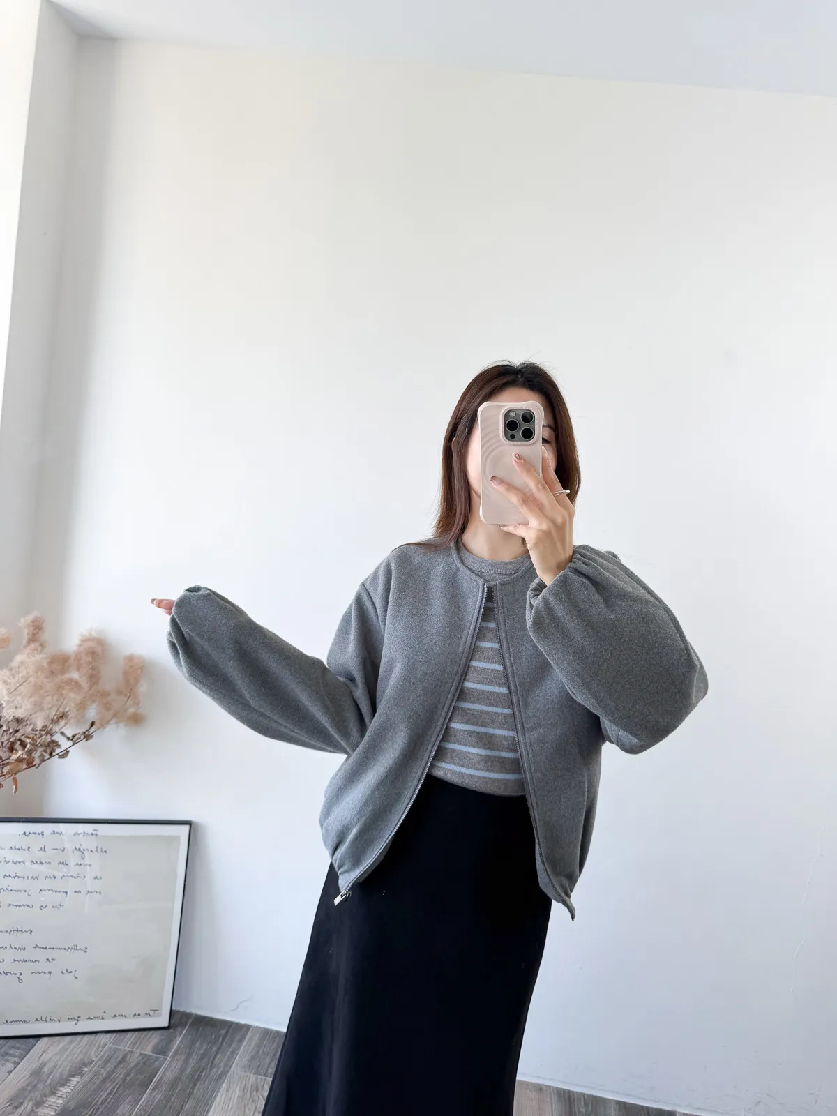 Wool 20% / 有內裏 / 無彈性 極簡版型~ 無領設計下擺還有內縮QQ邊! 如果平常不喜歡穿太厚重外套的話 這款很推薦唷~ 輕鬆好駕馭 而且布料質感也好讚吶! Model 158/48(腰26 臀35.5吋) detail/