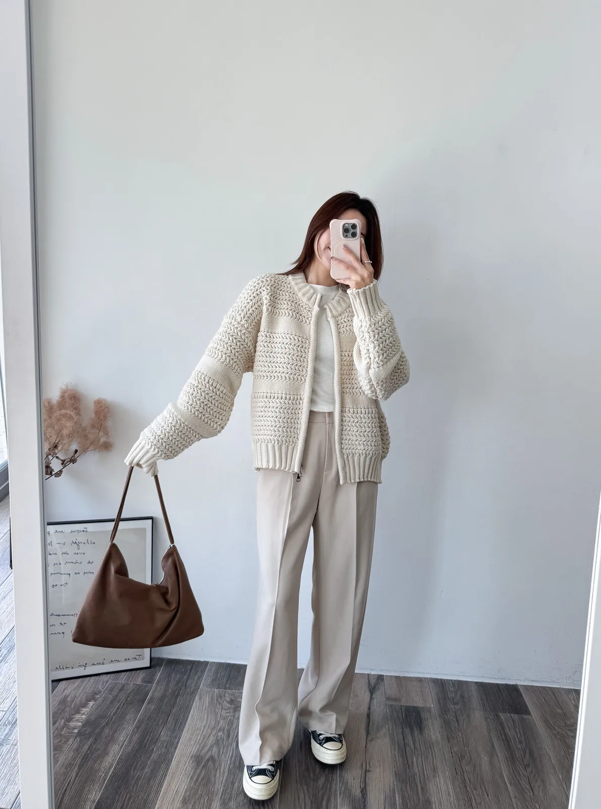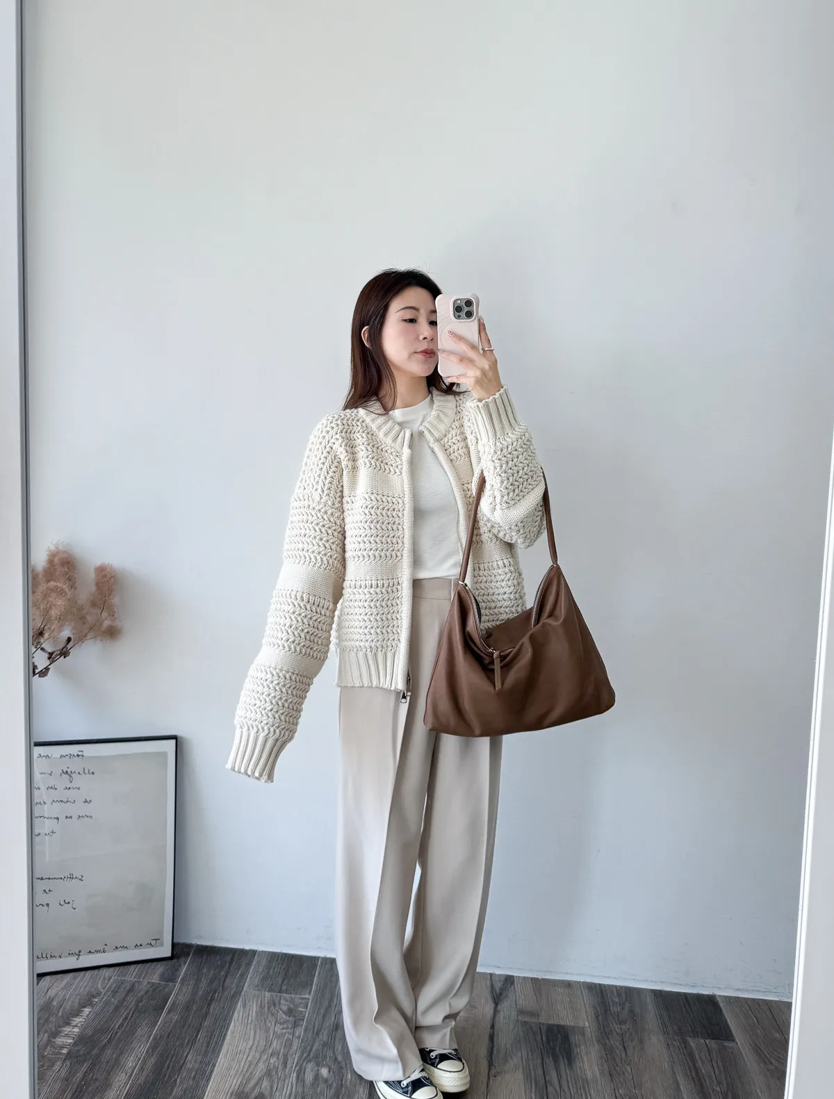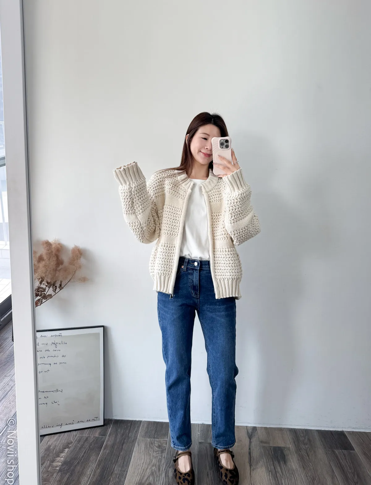 針織料 / 有彈性 這個織紋好特別好好看~第一眼就好喜歡 簡單配個合身的打底衣就可以! 因為織紋很特別~簡單的搭配就很有重點了 *made in china Model 158/48(腰26 臀35.5吋) detail/
