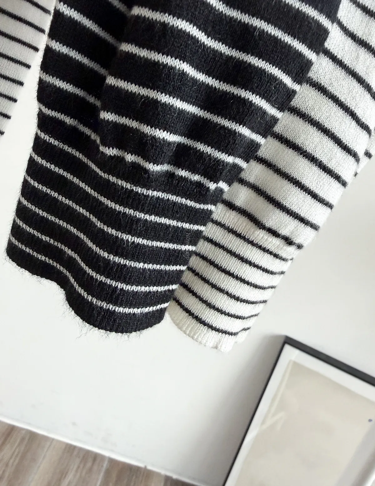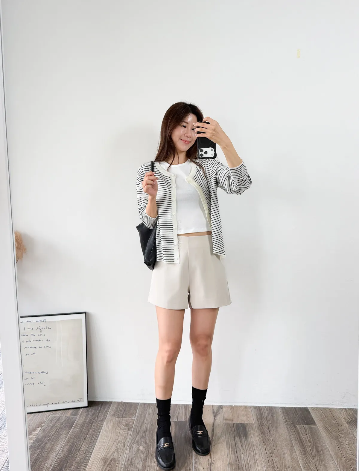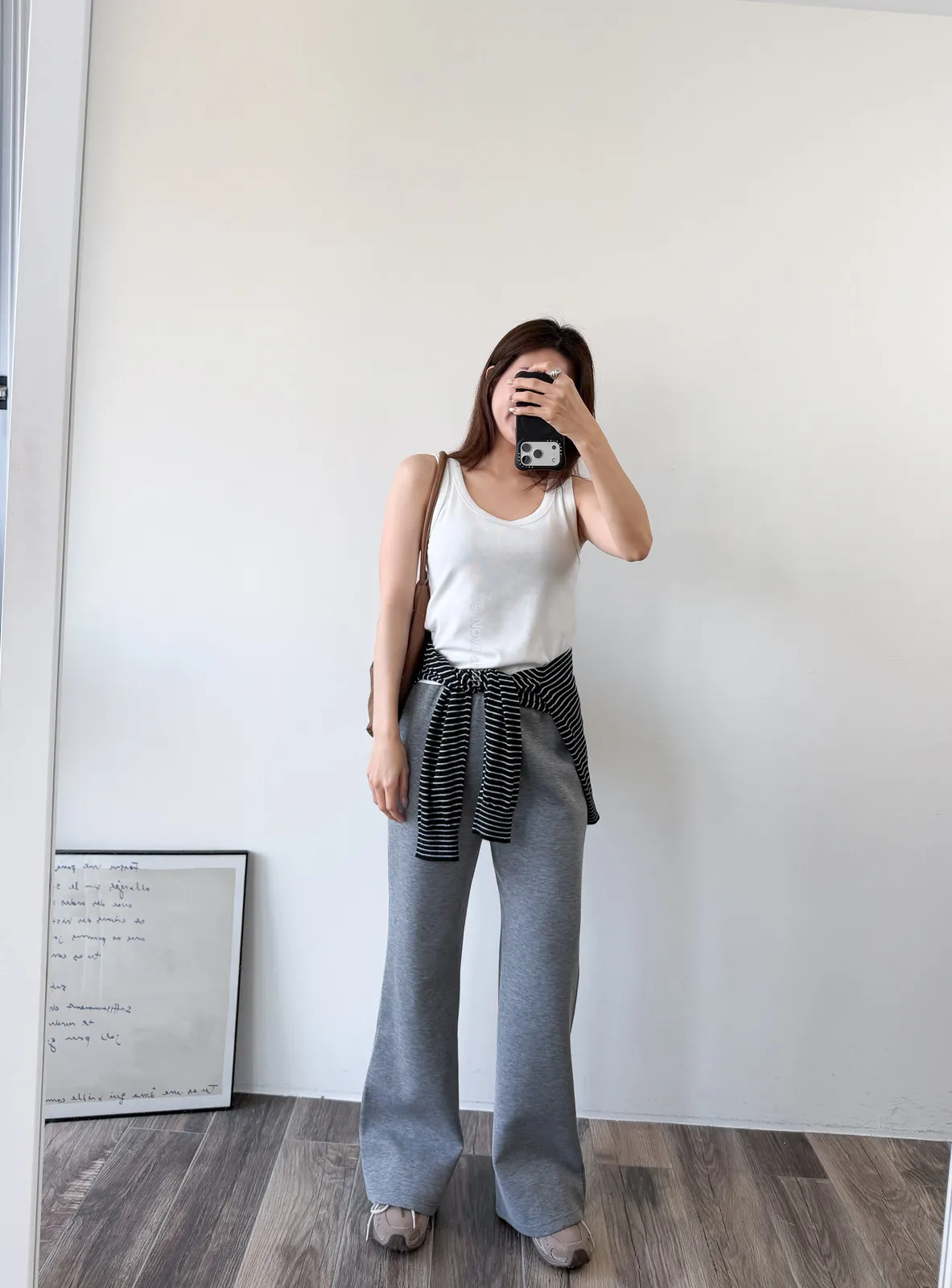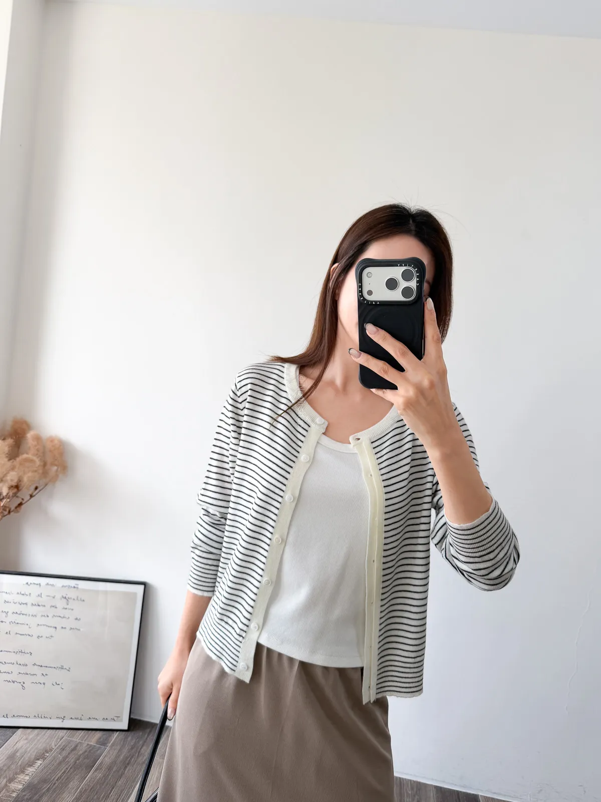 細針織/ 有彈性 材質是柔滑細針織整件彈性很好~ 版型微微合版外面要疊搭外套也可以. 不穿的時候拿當披肩和綁腰也很適合 薄薄的綁起來比較好看! Model 158/48 (腰26 臀35.5吋) detail//