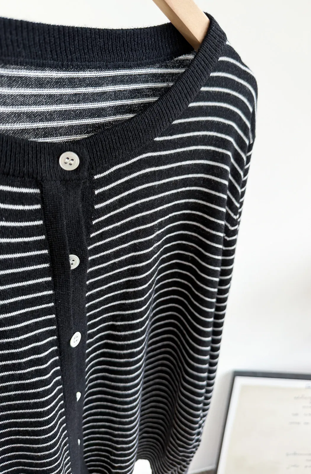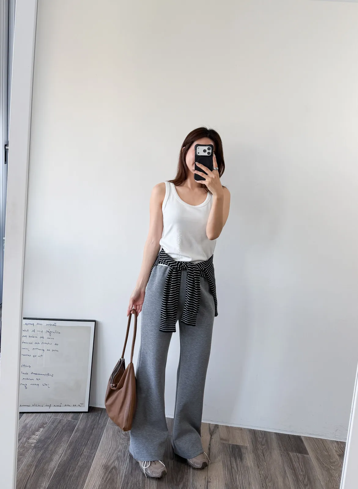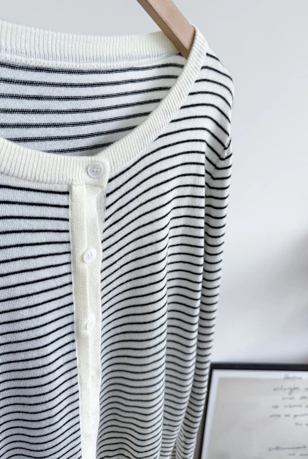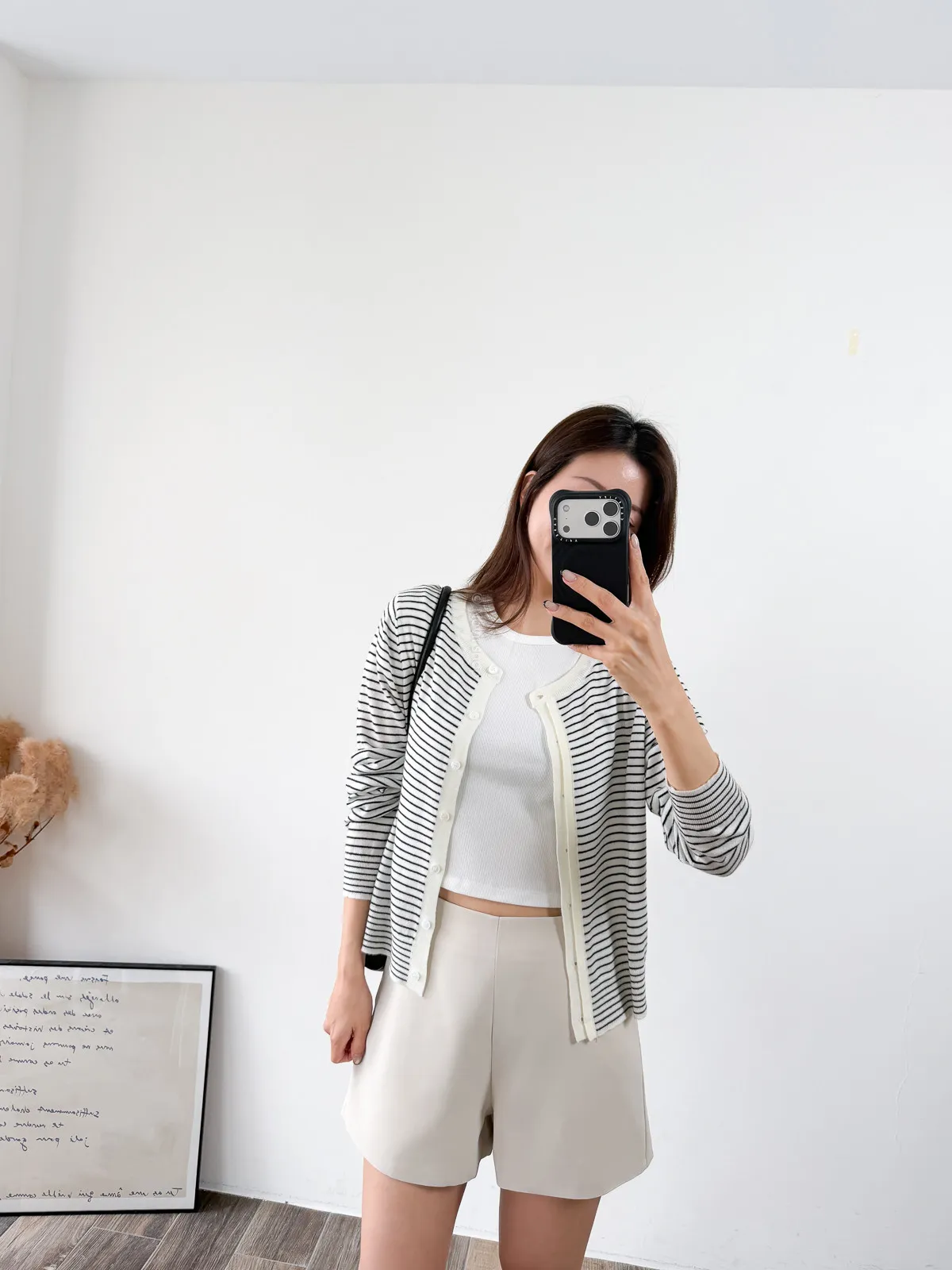 細針織/ 有彈性 材質是柔滑細針織整件彈性很好~ 版型微微合版外面要疊搭外套也可以. 不穿的時候拿當披肩和綁腰也很適合 薄薄的綁起來比較好看! Model 158/48 (腰26 臀35.5吋) detail//